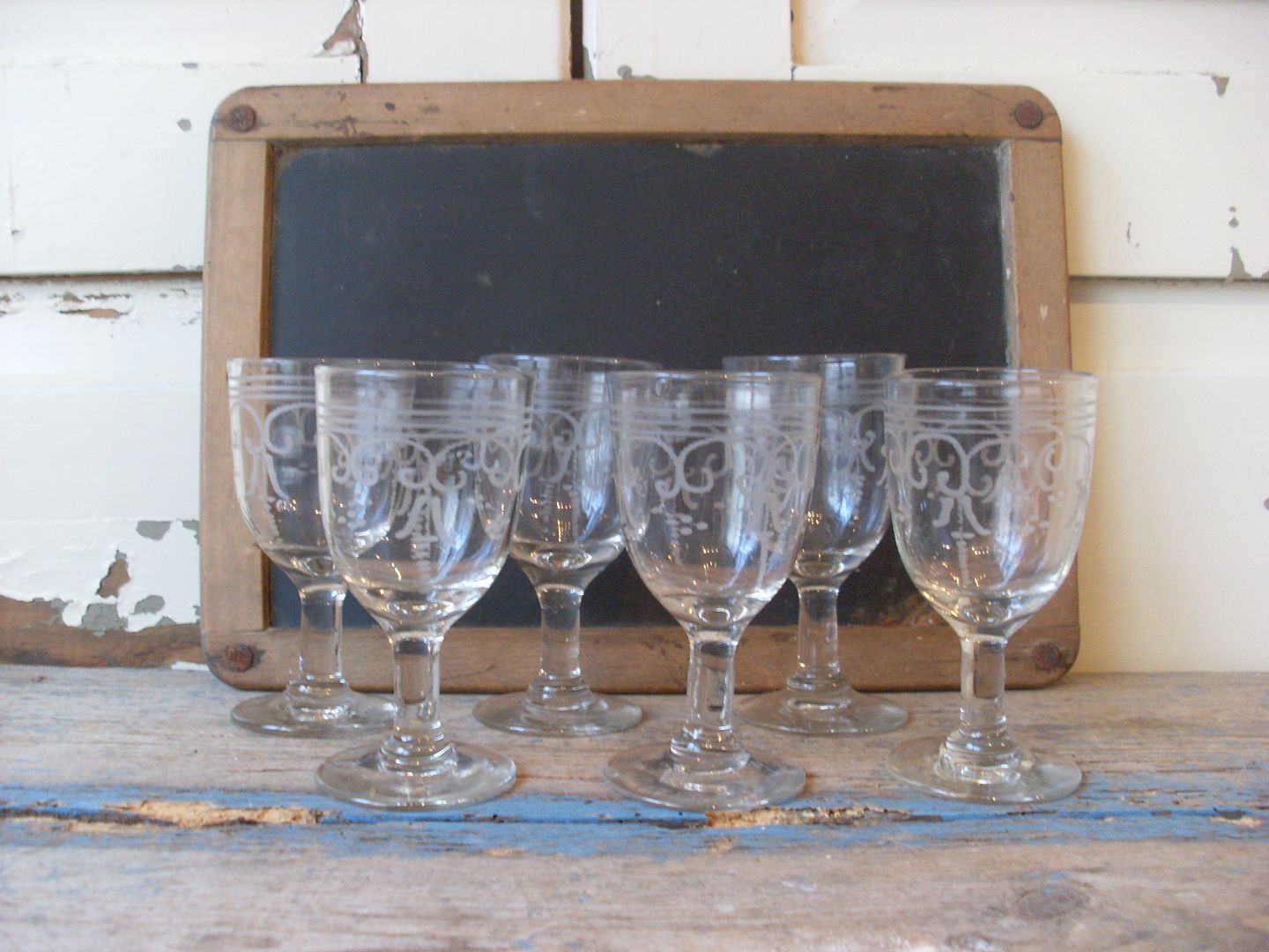 6 stk 1800tals franske vinglas med fint slebet mønster