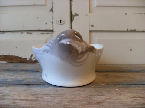 Royal Copenhagen stor Art Nouveau jardinere med gennembrudt kant, dekoreret med fisk, samt hanke i form af krabber.