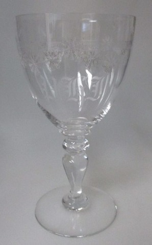Krystal pokal, omkring 1900. Med mønstre på kumme og indgraveringen: P.H.J. H.: 20,5 cm.