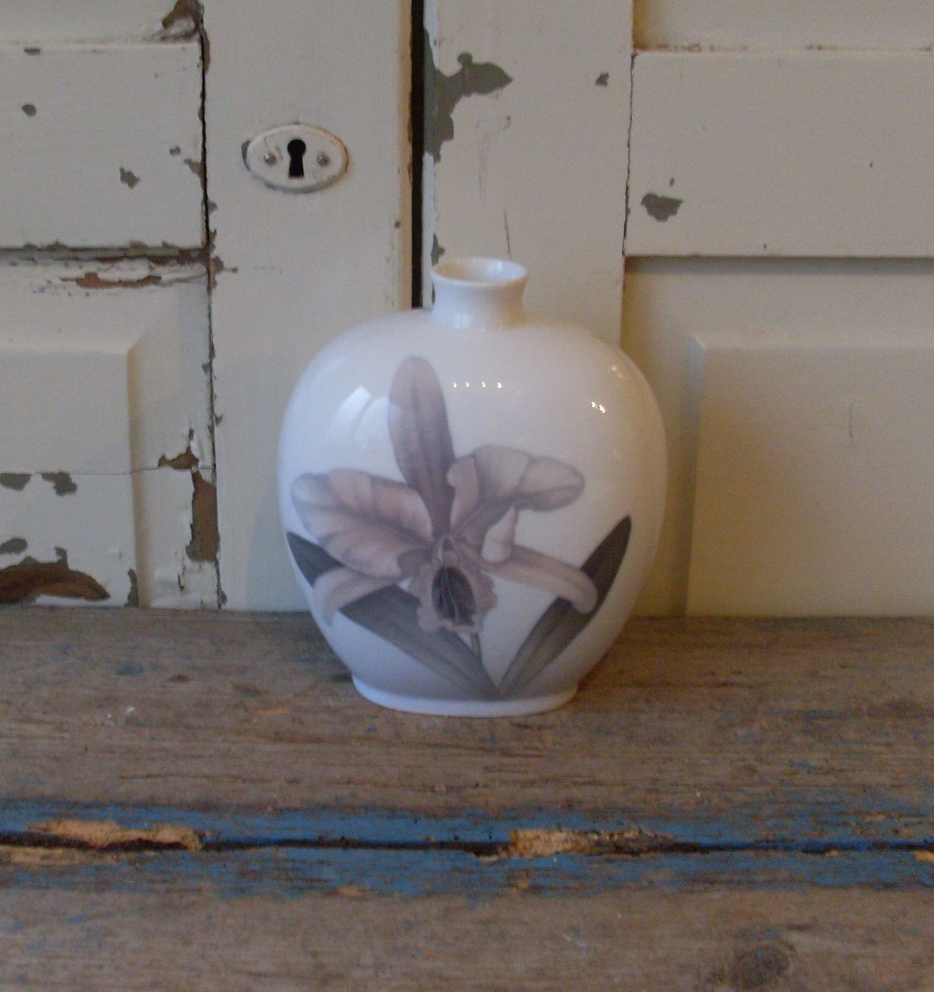 Royal Copenhagen Art Nouveau vase med smukt bemalet orkide.