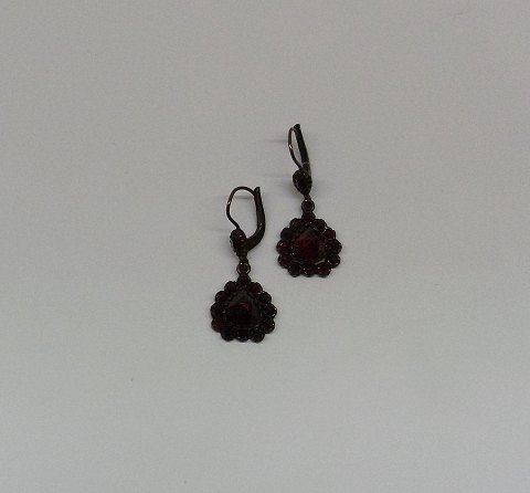 Par meget smukke granat øreringe. Granater fattet i oxyderet sølv.