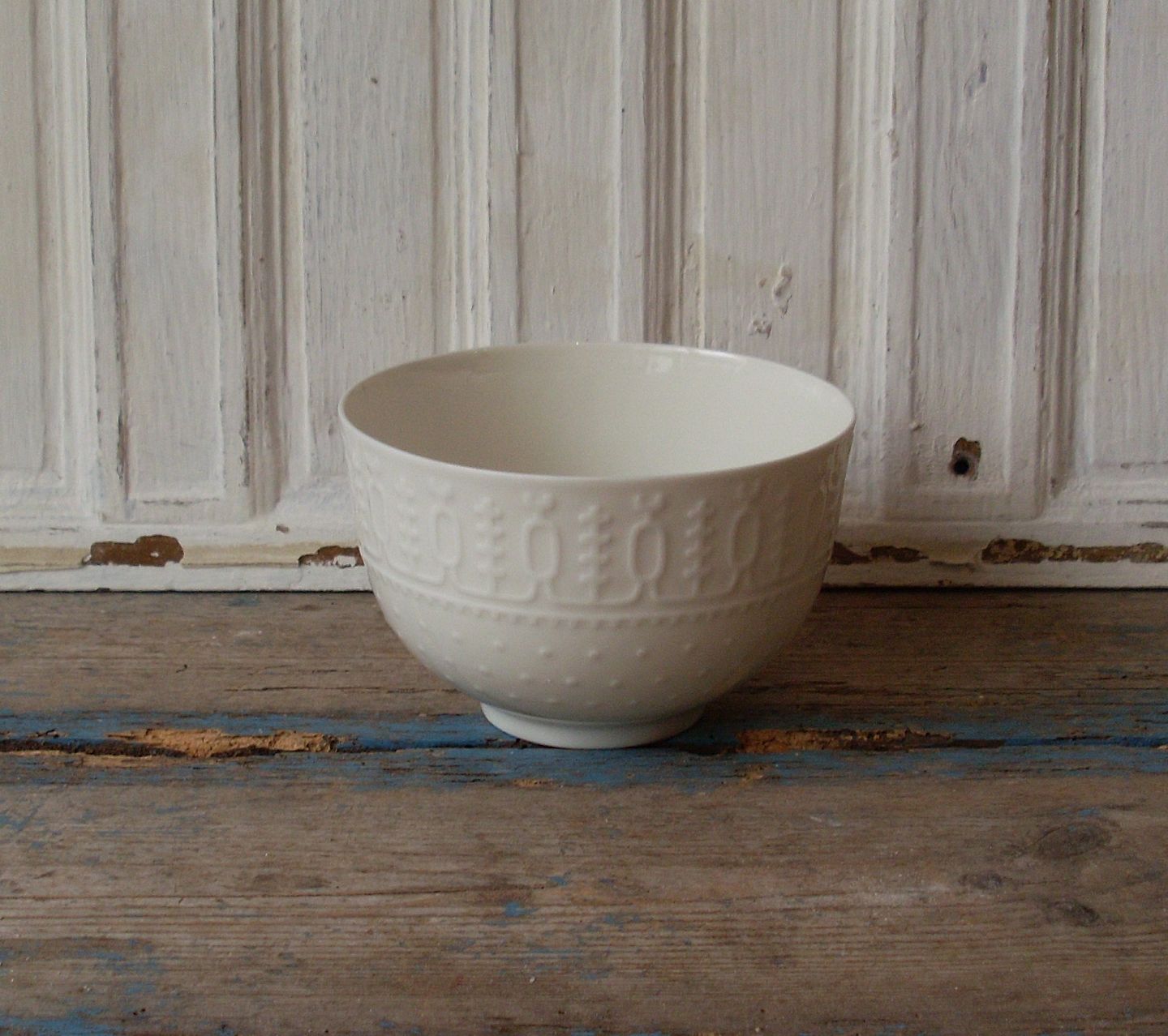 Royal Copenhagen Blanc de Chine skål med mønster i relief no. 4128