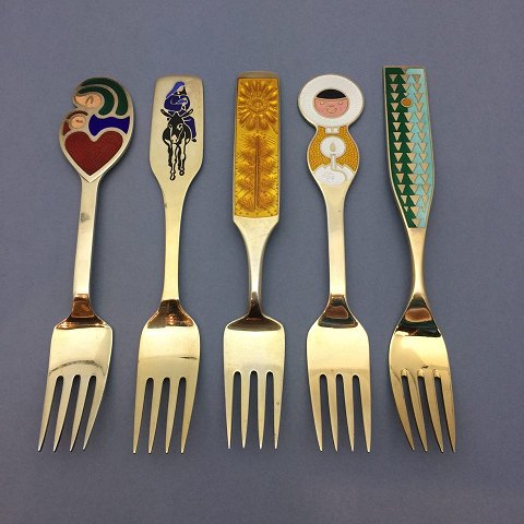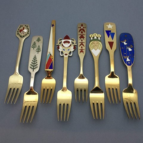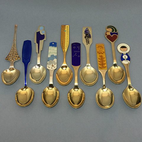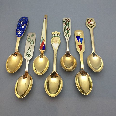 Anton Michelsen Christmas spoons of gilt silver and enamel