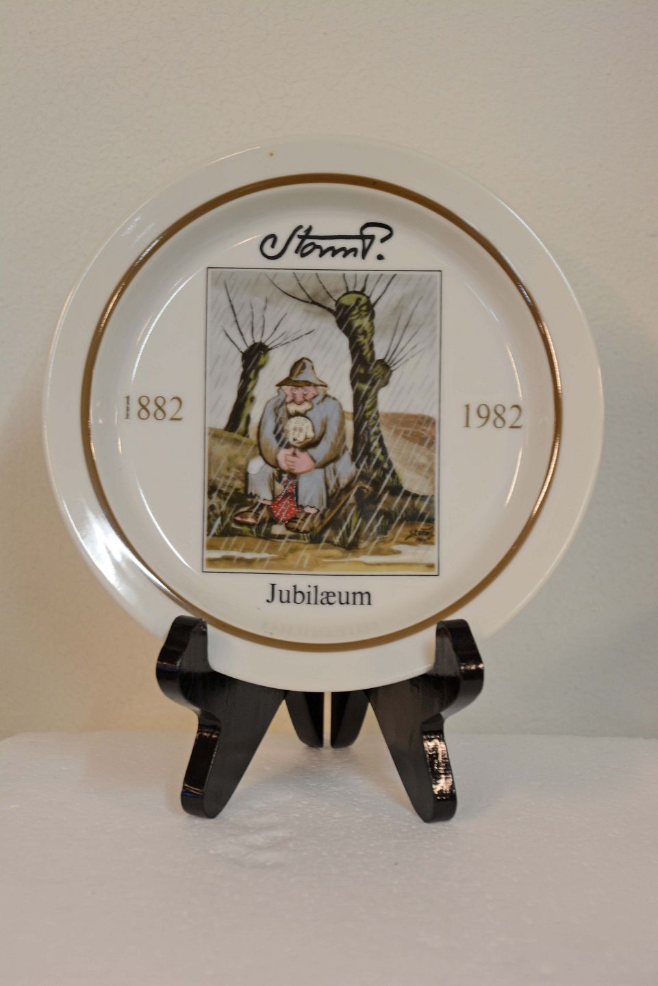 Text available in Danish: En kongelig Storm P. jubilæumsplatte fra Royal Copenhagen. 100 års jubilæum år 1882-1982.