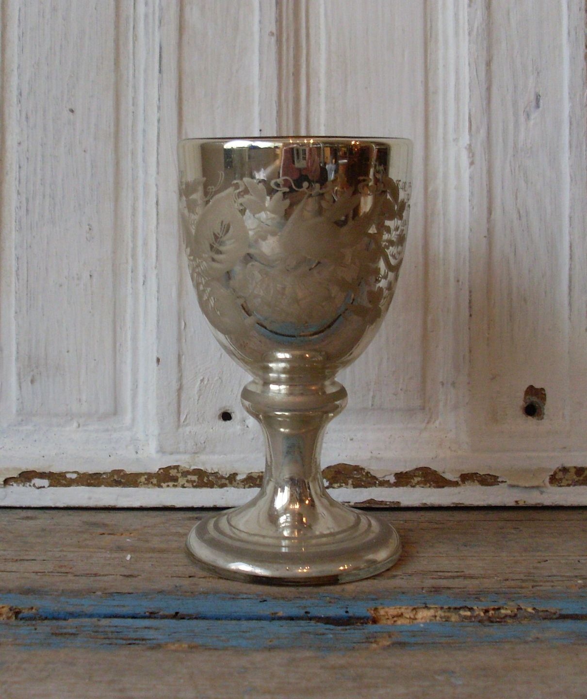 Smukt ægformet bæger i fattigmands sølv, med smuk dekoration.