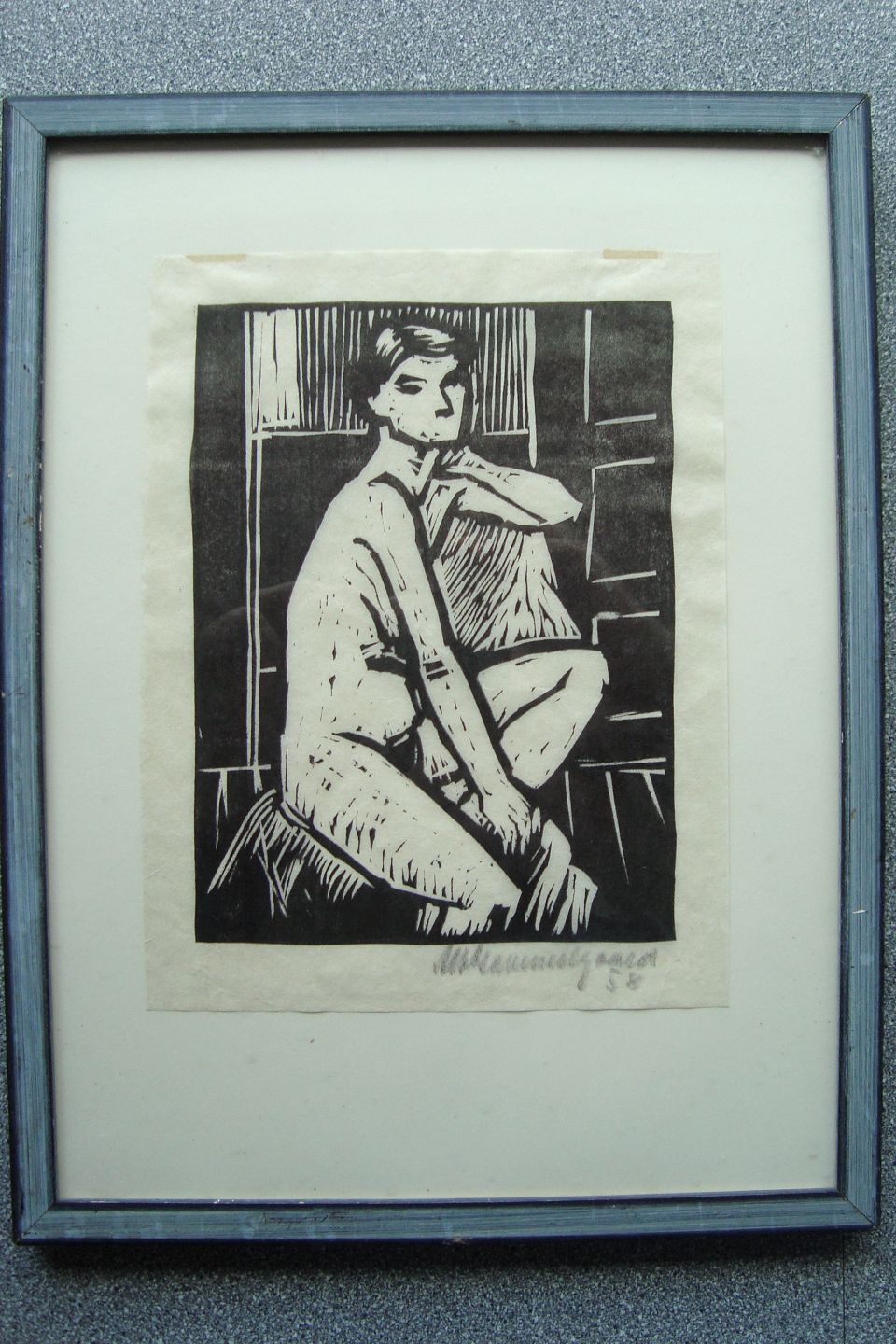 Træsnit af Albert Gammelgaard - Nøgen kvindelig model 1958.