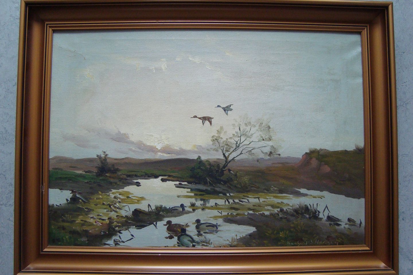 Maleri af Mark Osman Curtis - Ænder i og ved mose.
