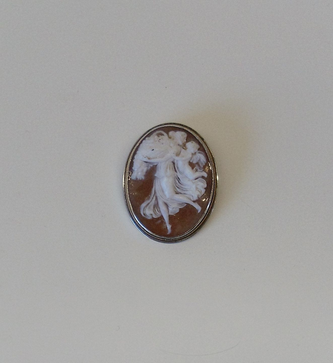 Meget smuk stor Camé, nymfe og amorin med blomster kurv.