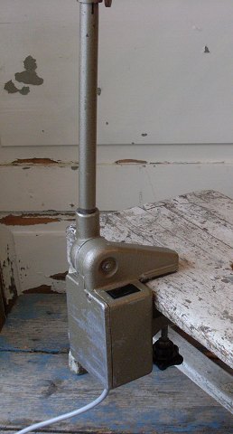 Industriel arbejds lampe, lampen kan justeres i højde, selve lampehovedet kan også reguleres på flere måder.