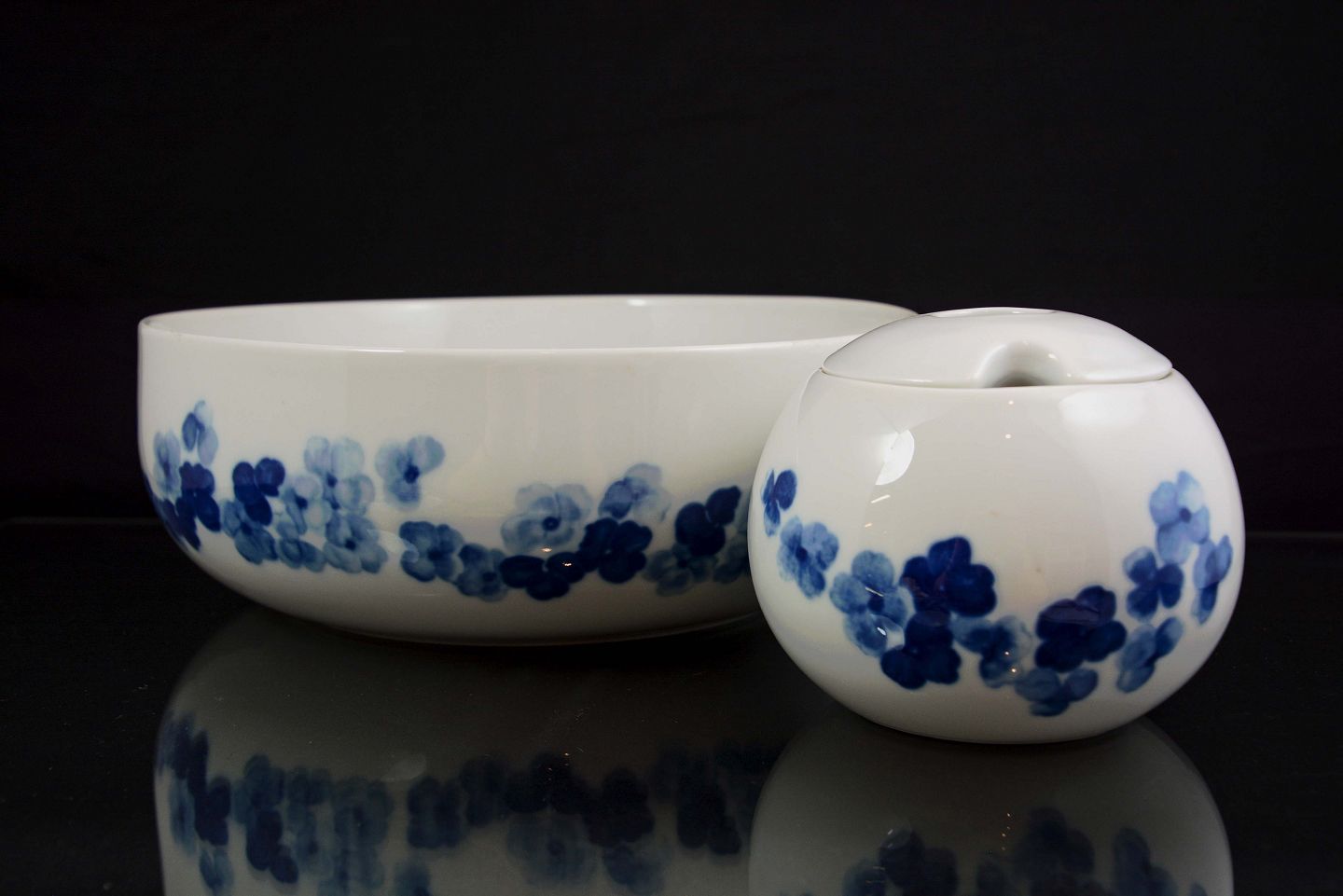 Text available in Danish: Stel Troja fra Bing og Grøndahl. Stellet er hvidt med blå blomster, som er designet af Martin Hunt. Vi har flere dele af stellet på lager.