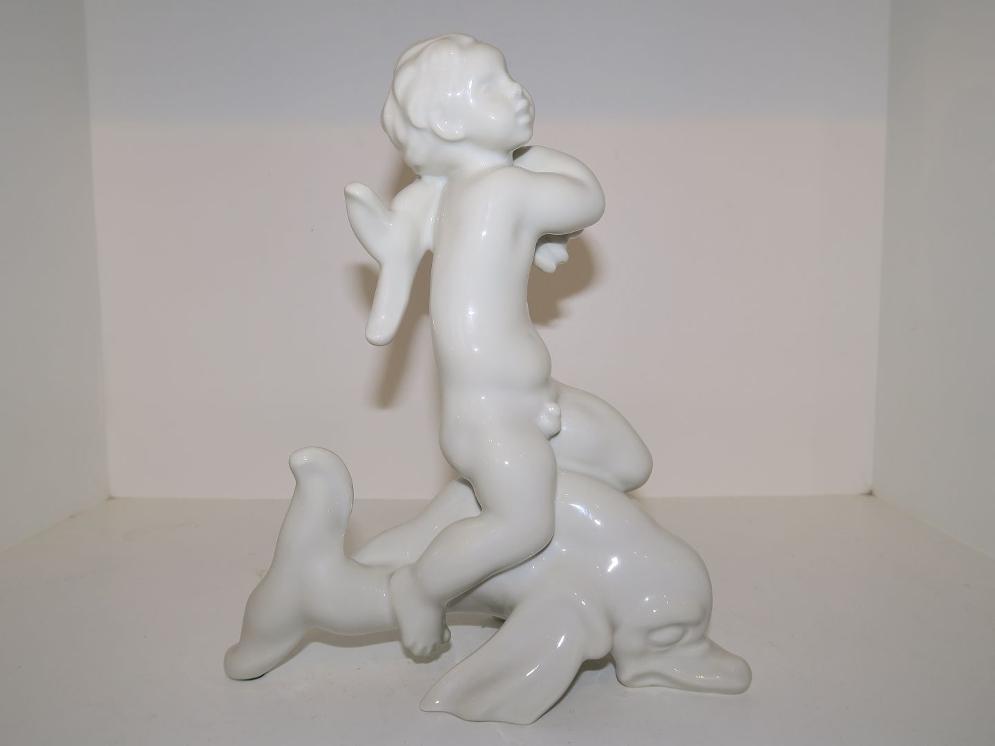 Bing & Grondahl Blanc de Chine figurine, boy on dolphin.