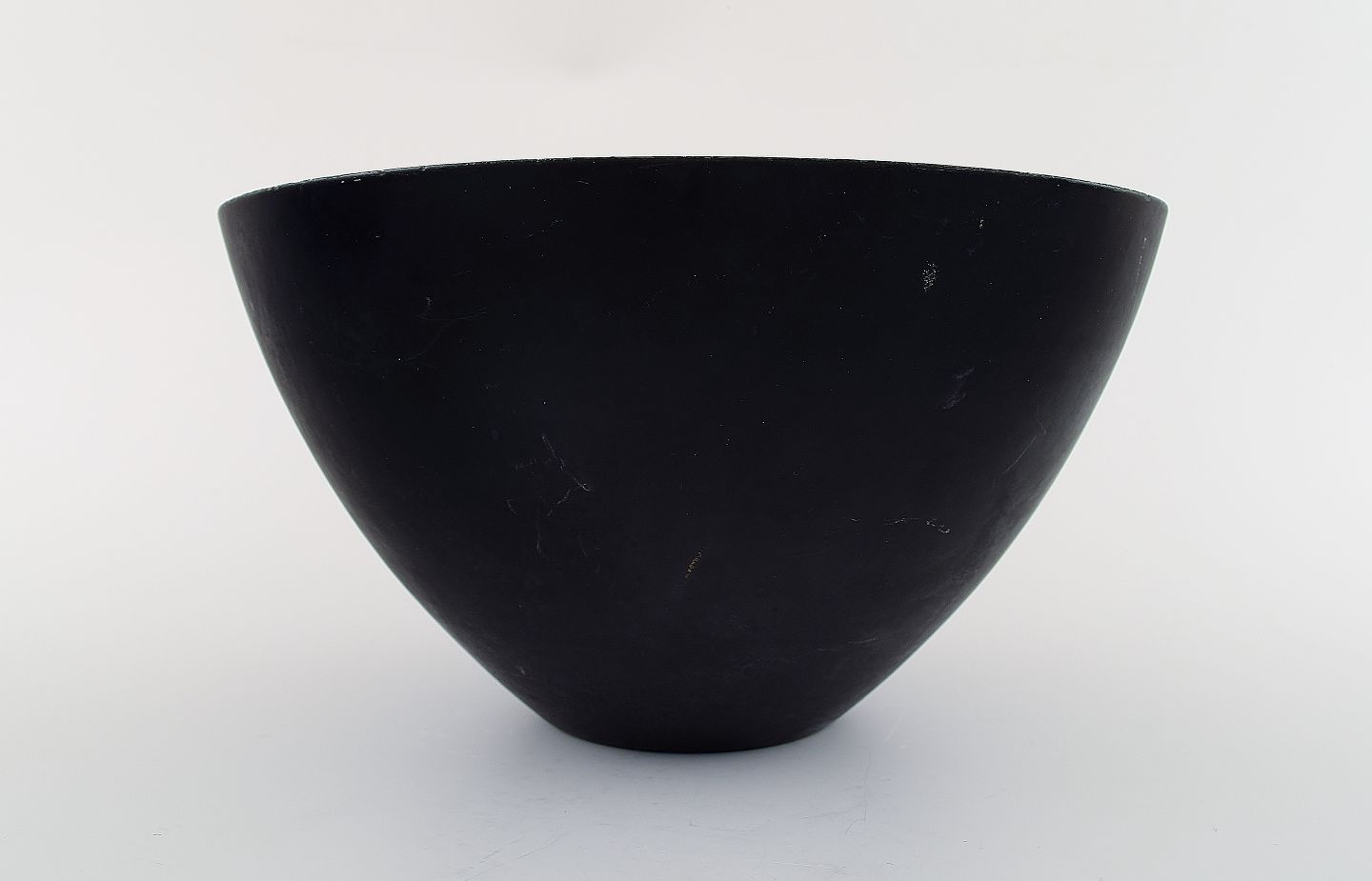 Sjælden og stor Krenitskål af Herbert Krenchel. Sort metal og gul emalje.