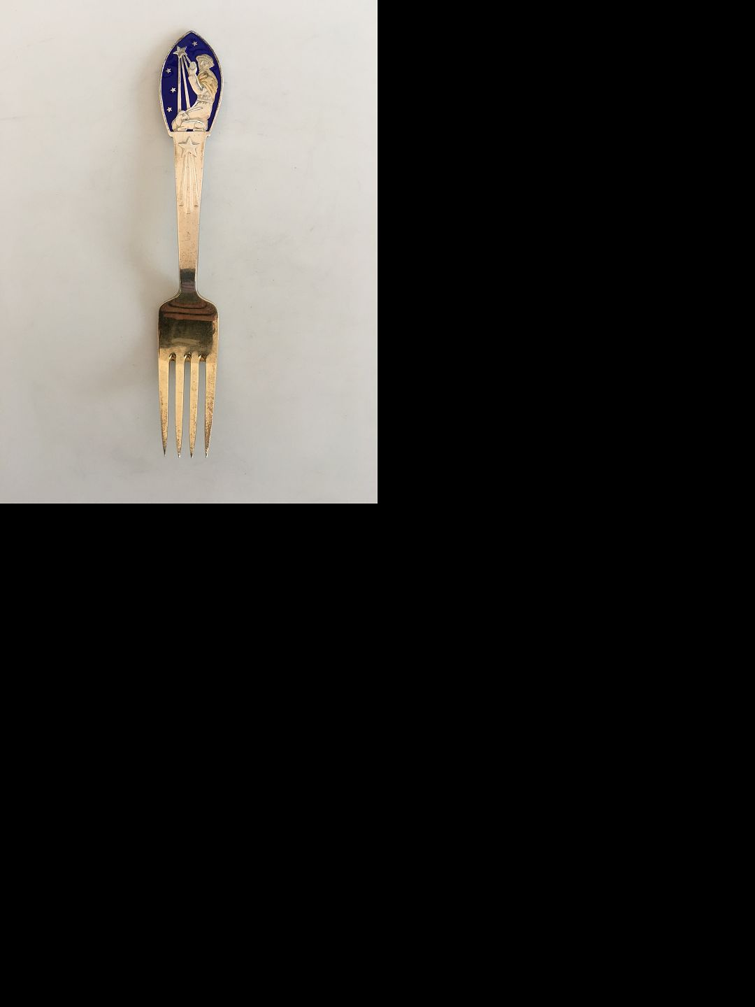 A. Michelsen Christmas Fork 1935 Gilded Sterling Silver with Enamel
