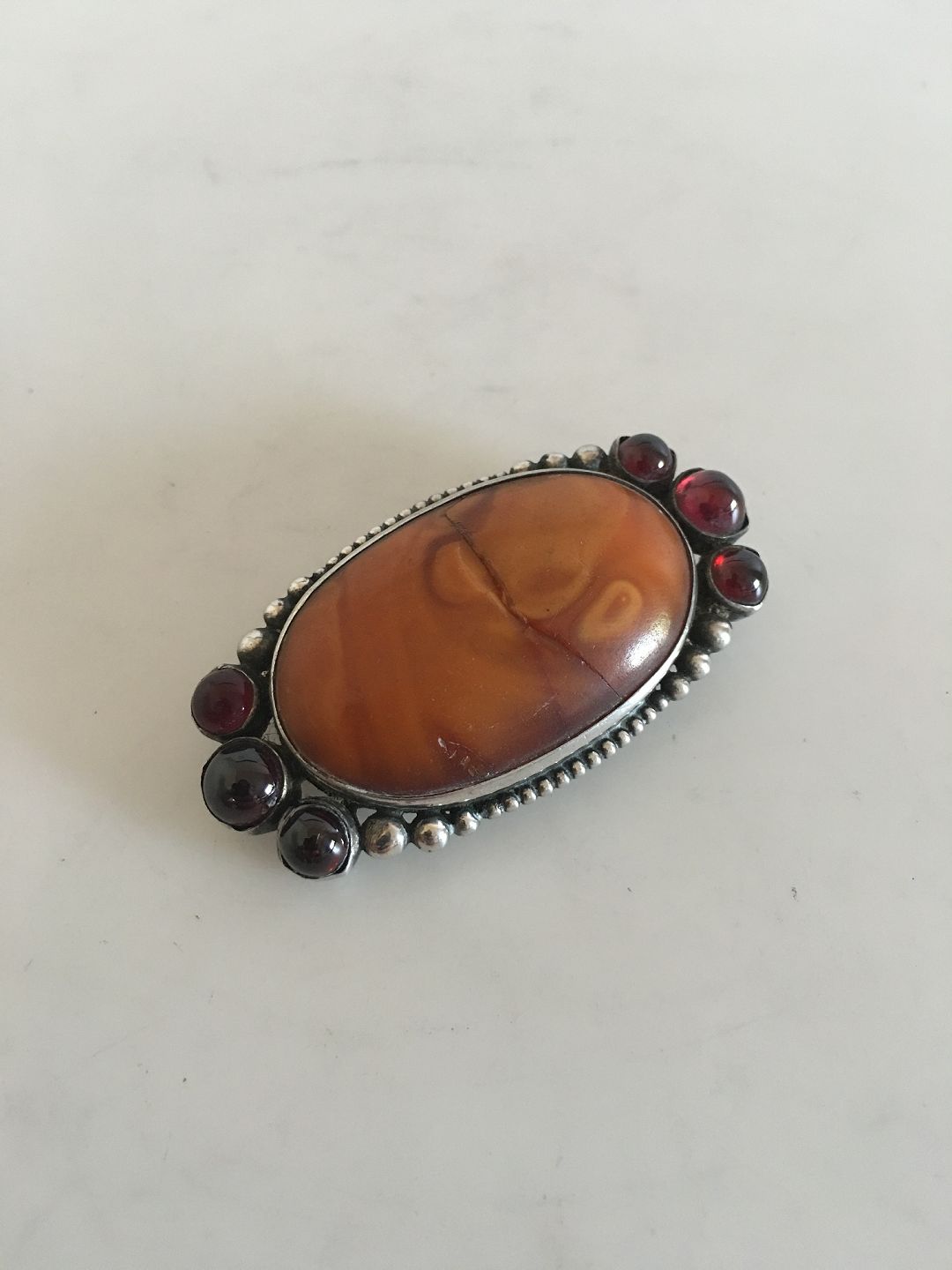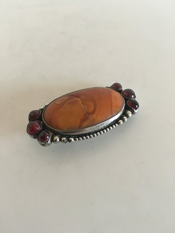 Mogens Ballin Silver Brooch with Amber and Red Stones