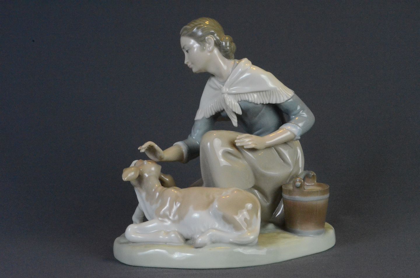 Porcelænsfigur: Lladro, Pige med kalv, h: 19 cm
