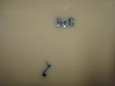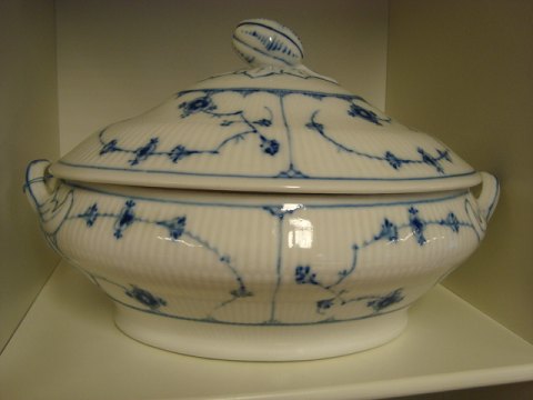 Terrin fra B & G i Musselmalet Riflet fra 1853 - 1894 i hel og fin stand, har en lille svindrevne ved øverste kant. L 32 cm B 22 cm