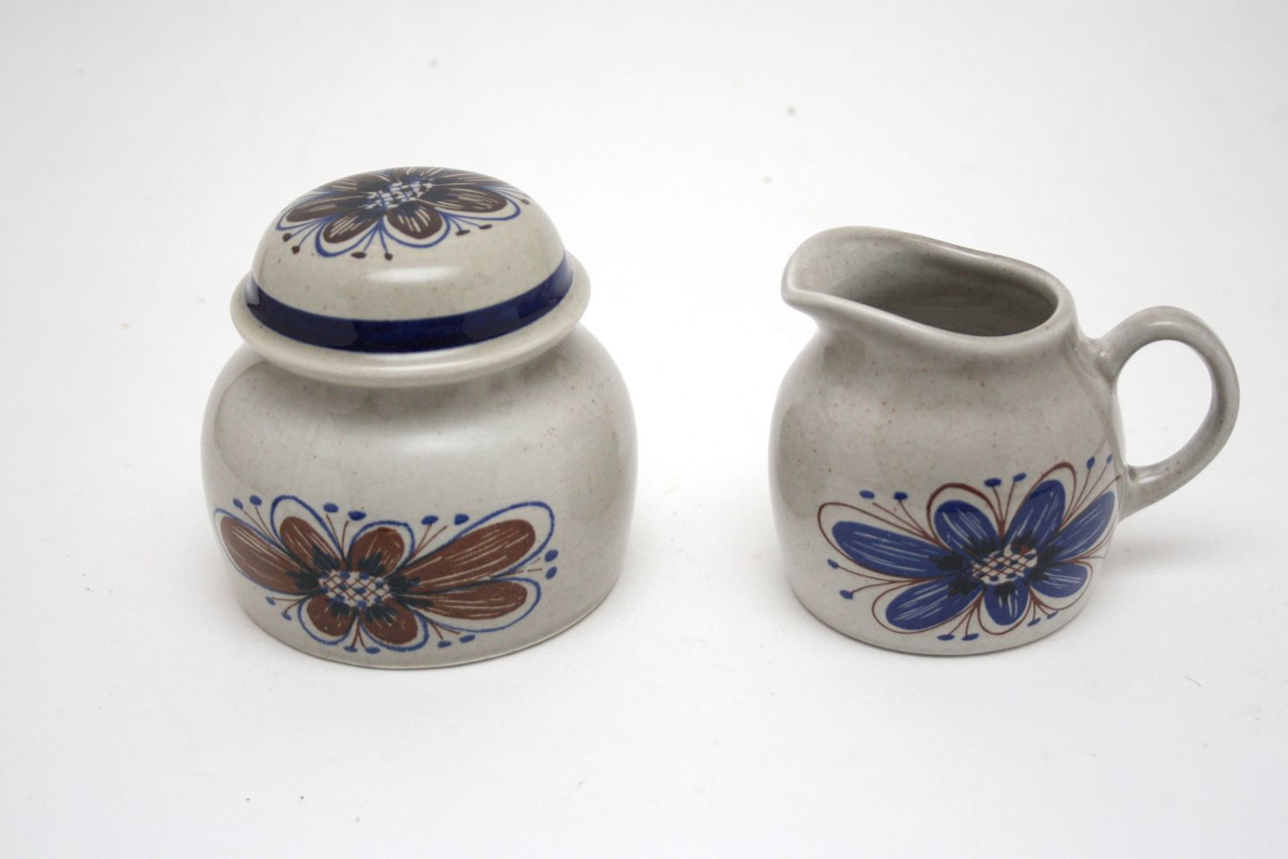Stavangerflint/Figgjo, Norway, Florry stel med blomster på grå bund med blå kant. Designet af Nils Aarrestad Sivertsen omkring 1960. Fin stand