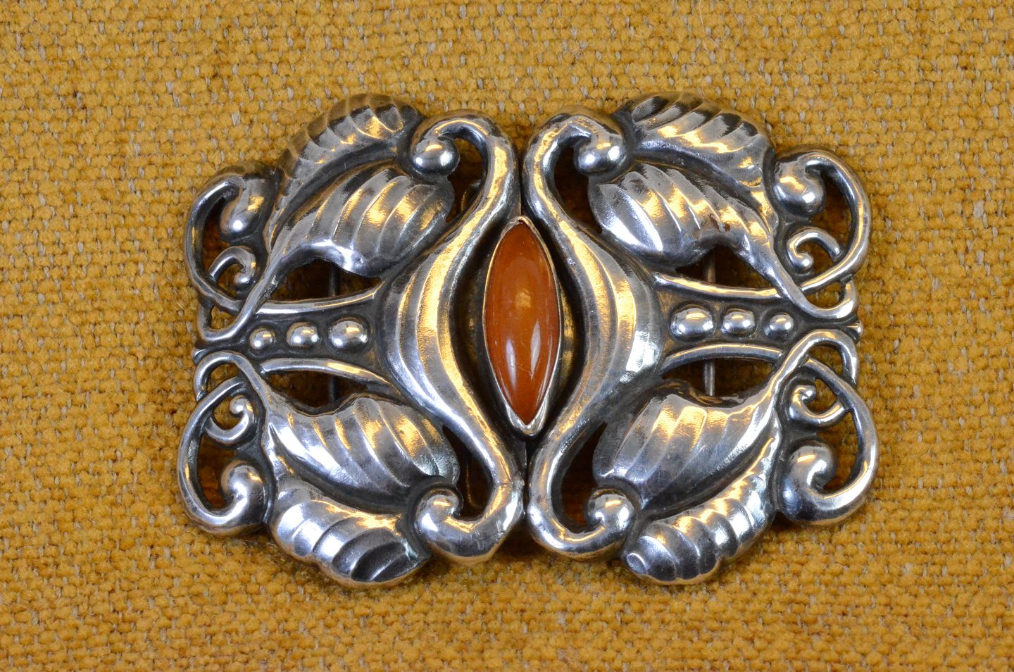 Bæltespænde skønvirke sølv og ravn. Str.: Art.No. 21