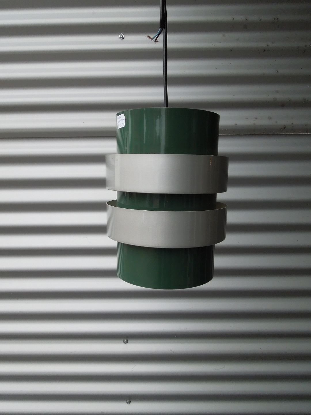 Eiffel pendel i grøn og grå farver designet af Jo Hammerborg. Fremstår med brugsspor - ridser og minimal bule i skærm.