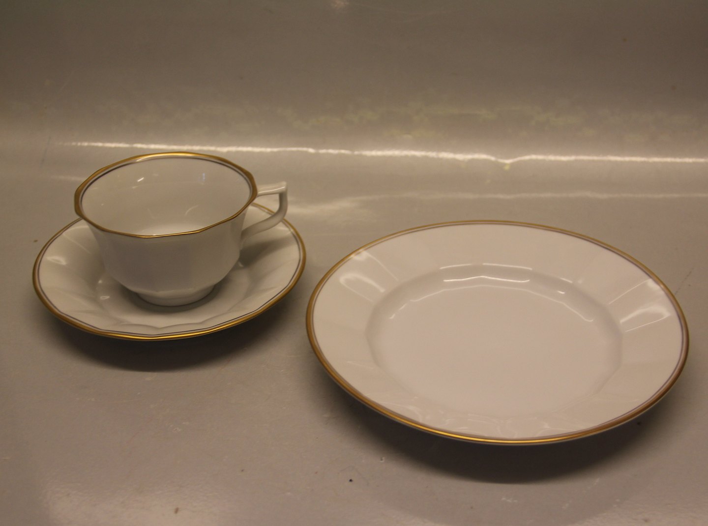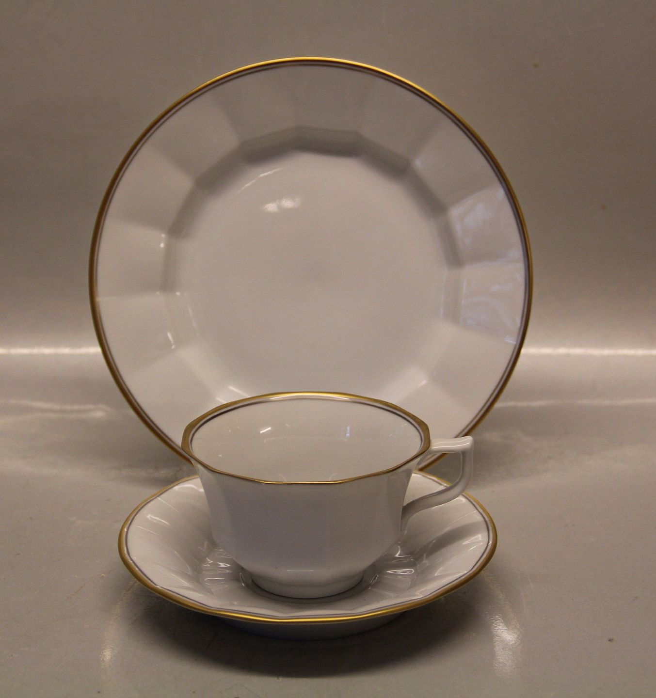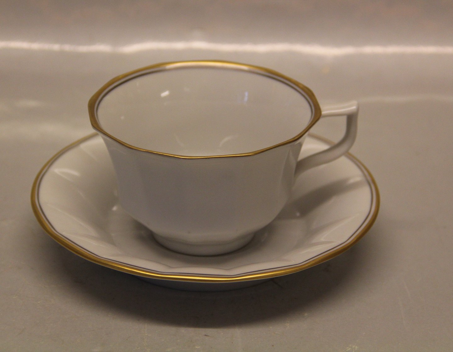 Palads 8500-1535 Kop og underkop 500-1161(081-082) Palace Kgl. hvid kantet stel med dobbelt kant grå og guld Royal Copenhagen I hel og fin stand