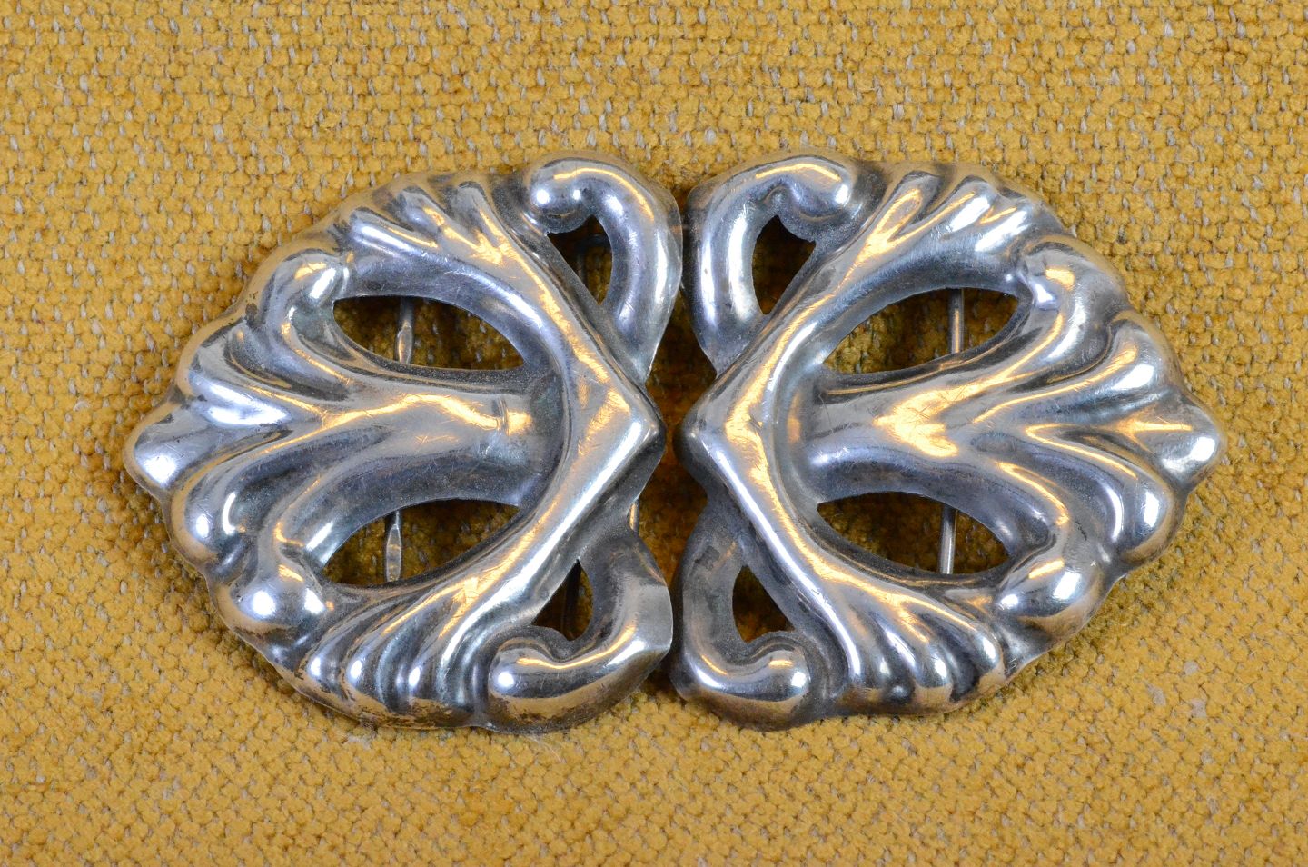 Bæltespænde i sølv Jugend organiske former. Stemplet 830 S. Str.:10*5,5cm. Art No. 44