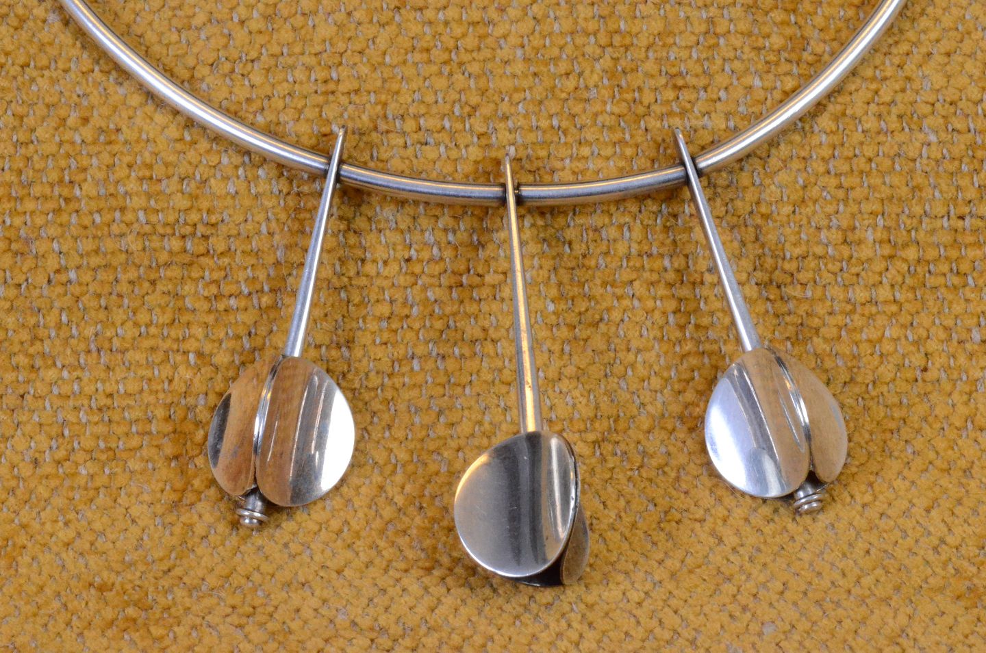 Neck ring in silver with 3 silver pendant designed as beechnut on stems. Hallmark 925 A. Michelsen. Diameter 11 cm. Art No. 54