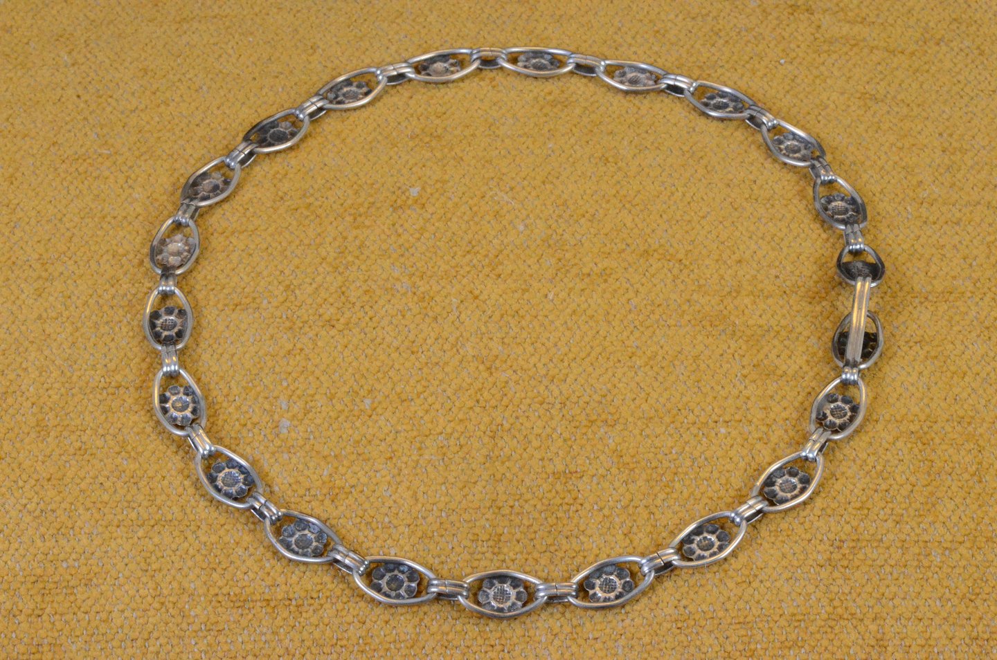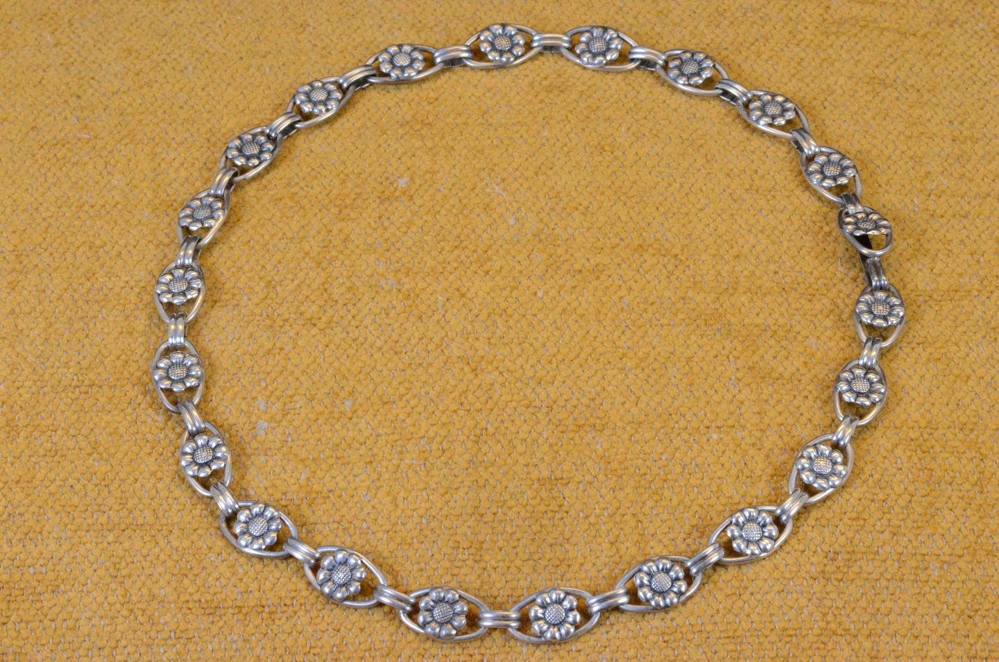 Collier halskæde artikuleret i ovaler vedhæftede sølv blomster, samlet med dobbelte samlinger. Stemplet 830S CAC. C.A.Christensen Eftf - København 1937 - 1947. Str.: L: 46 cm * H: 1 cm. Art nr 75