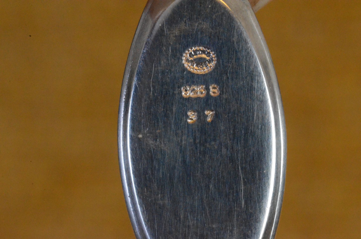 The Fish servingplate designed by Koppel from George Jensen in mini size with carabiner, all in silver. Stamped 925 S GJ logo Denmark. Str .: 3.5 cm. Art No. 86