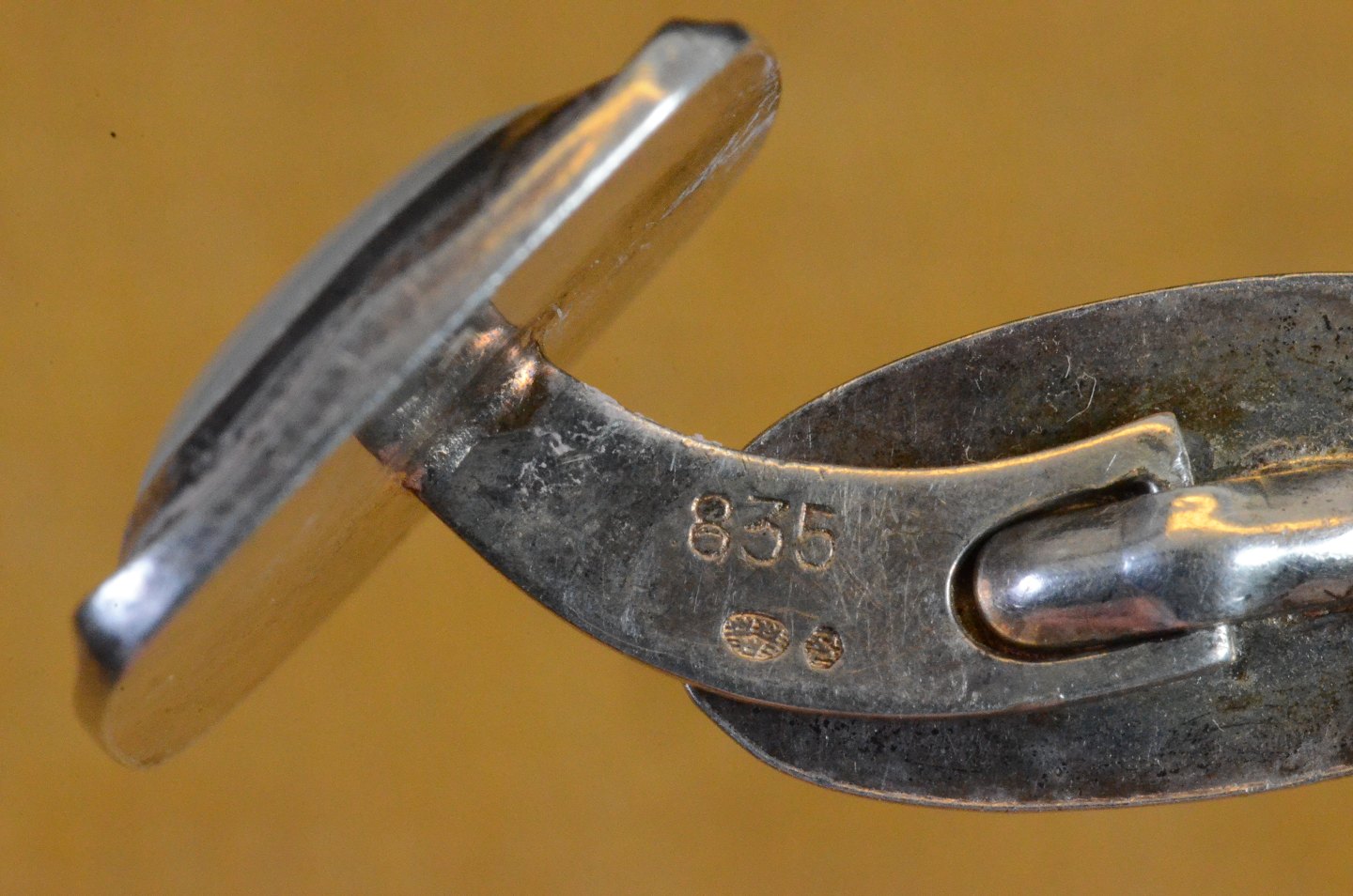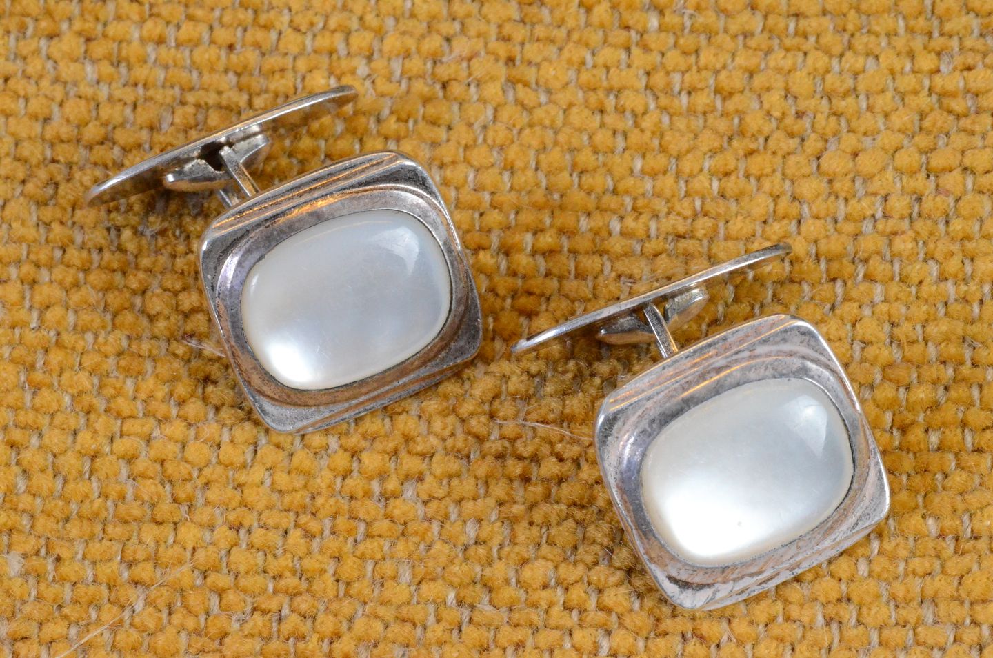 Cufflinks with mother of pearl. Stamped 835, three kroner (Sweden). Size: 1.6 * 1.8 cm. Art.No. 99