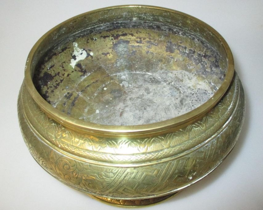 Chinese bronze censor, 19th century. Cire perdue. Decorated on the sides with flowers and swastika symbols. Dia .: 22 cm. H .: 12.5 cm.
