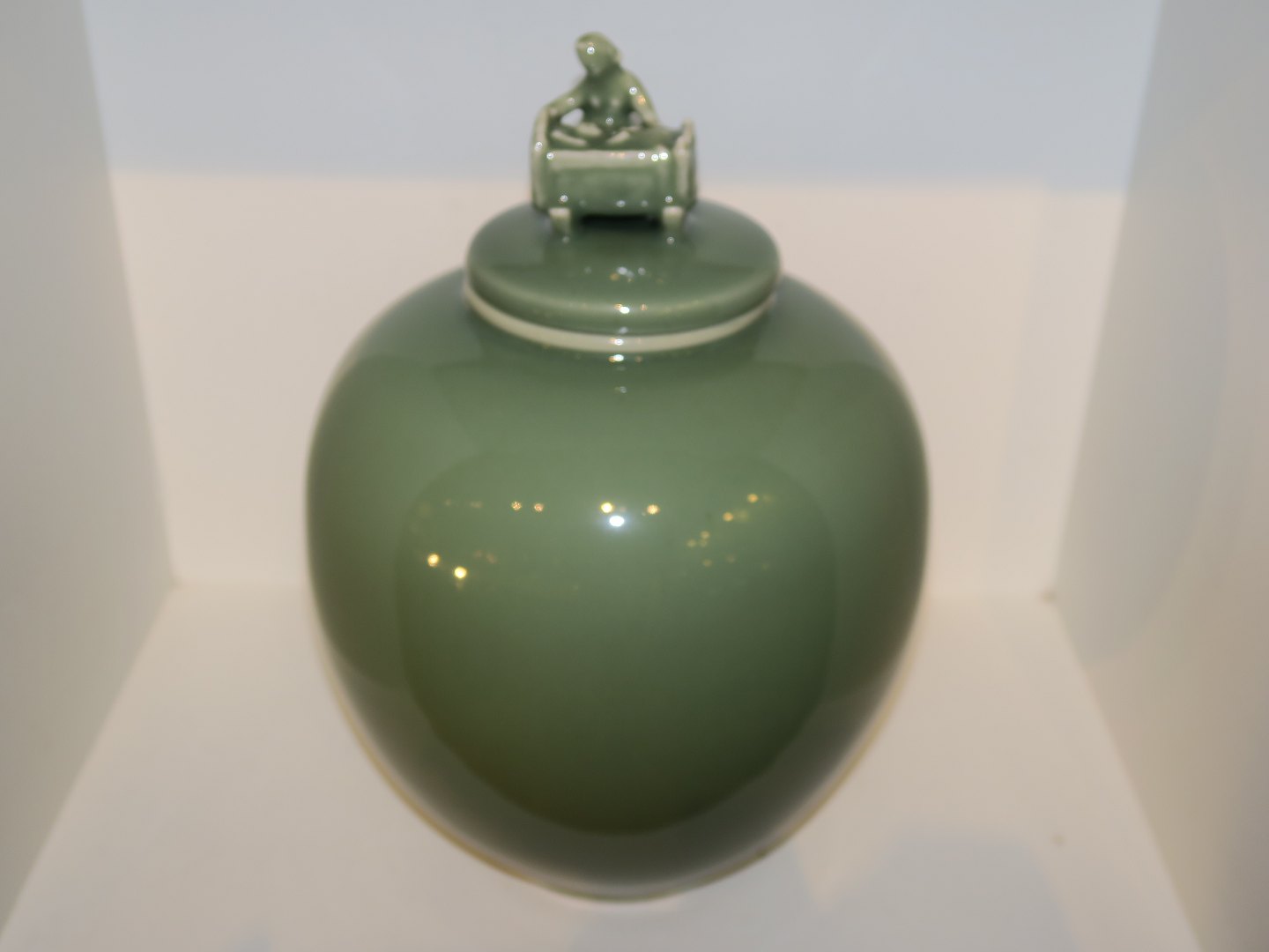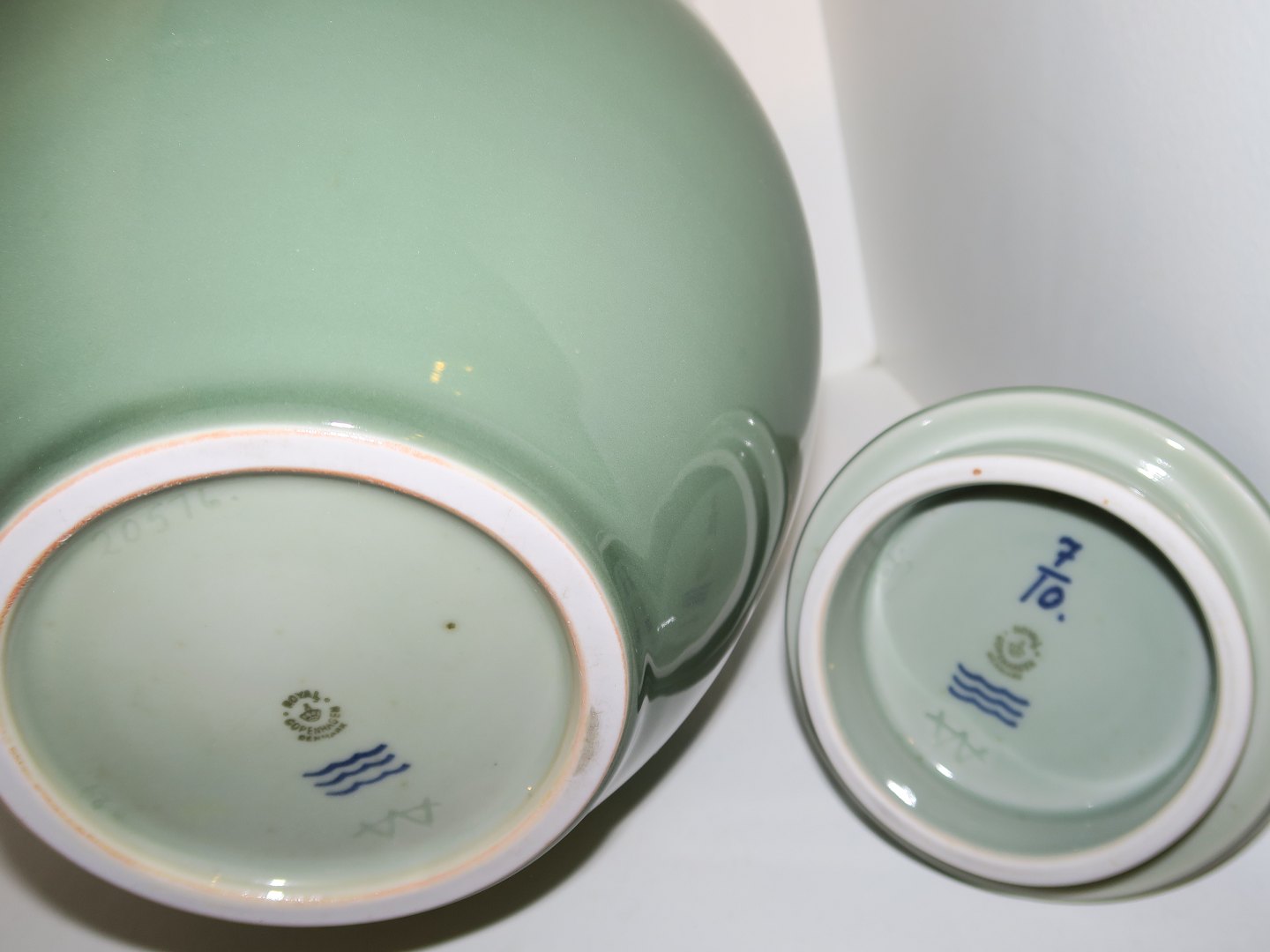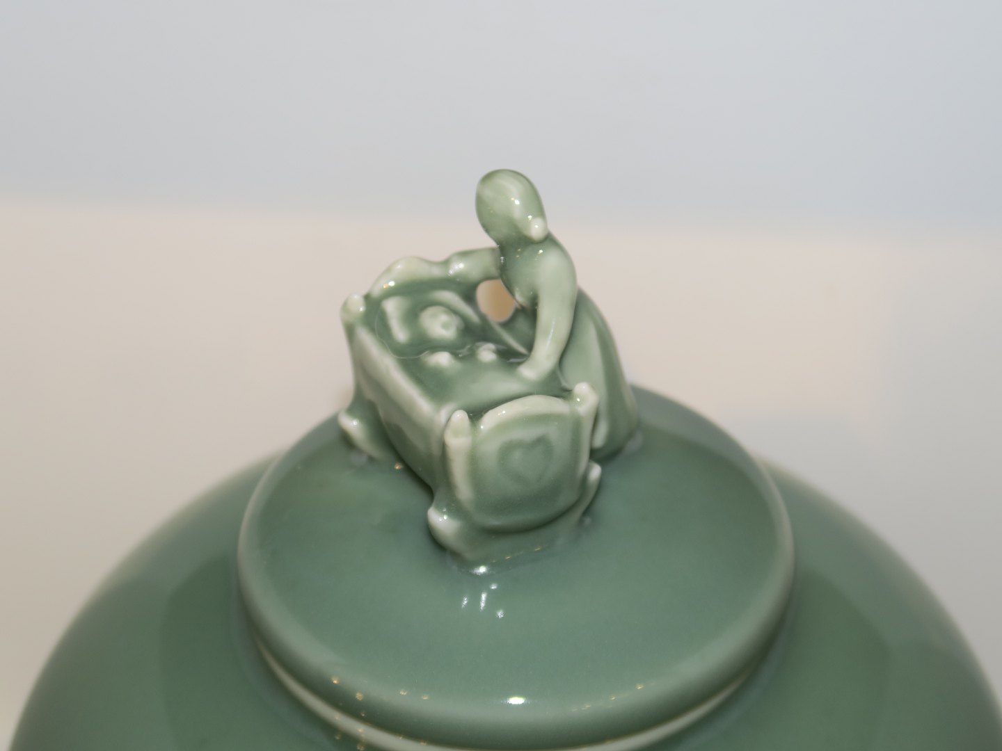 Royal Copenhagen keramik, stor og tung vase med låg, dekoreret med "Mor og vugge".