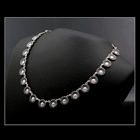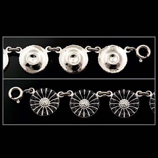 Georg Jensen Marguerit / Daisy Halskæde i Sterling Sølv med sort emalje.