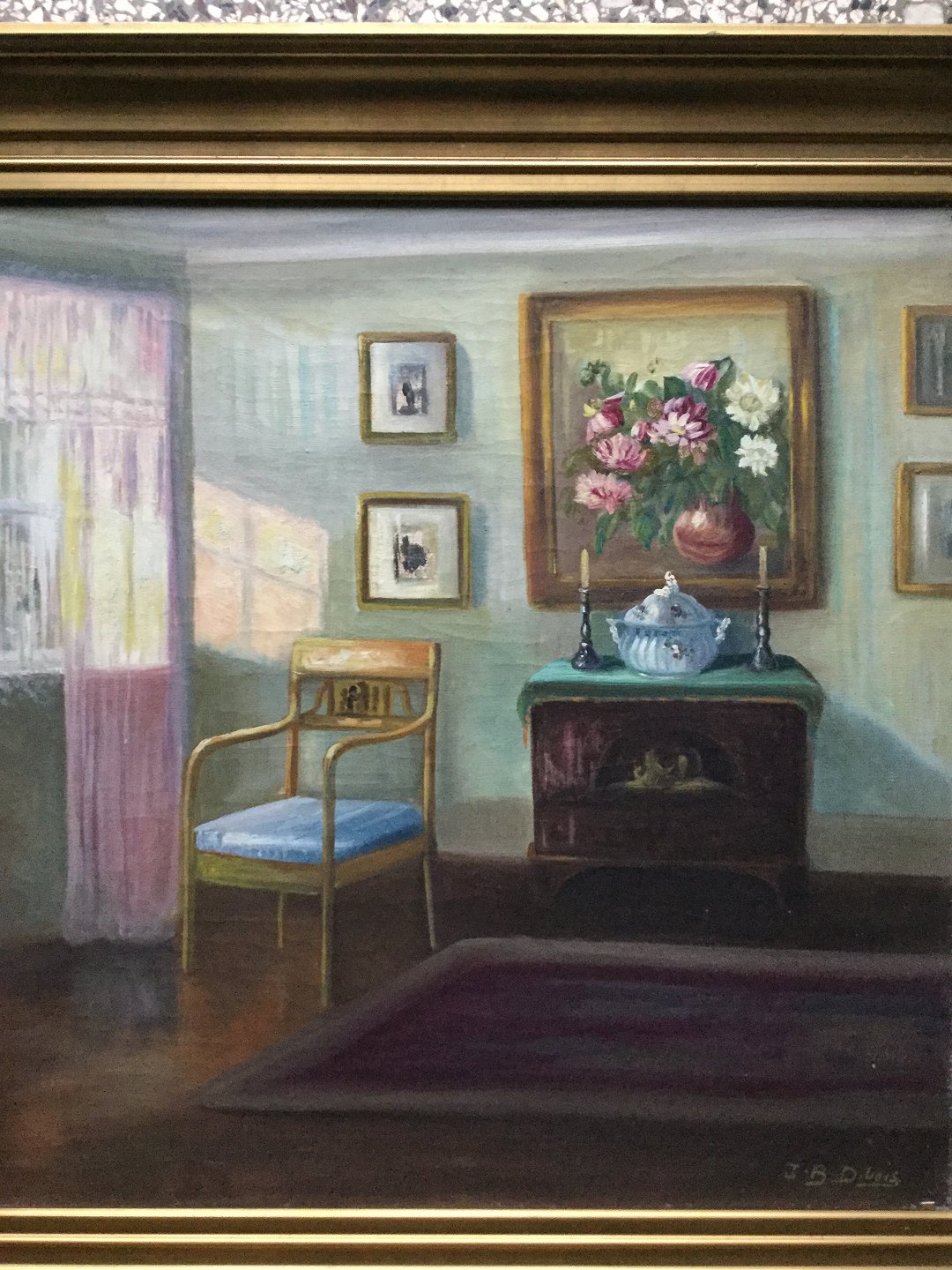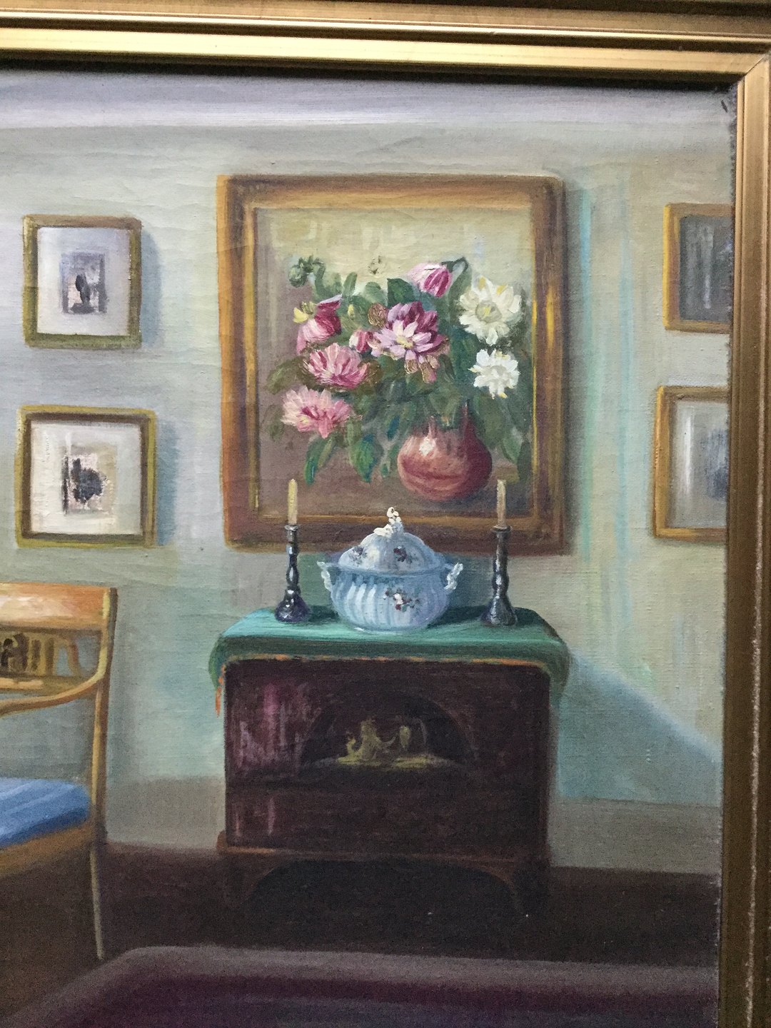 Maleri af Ingeborg Debois - Interiør fra stue.