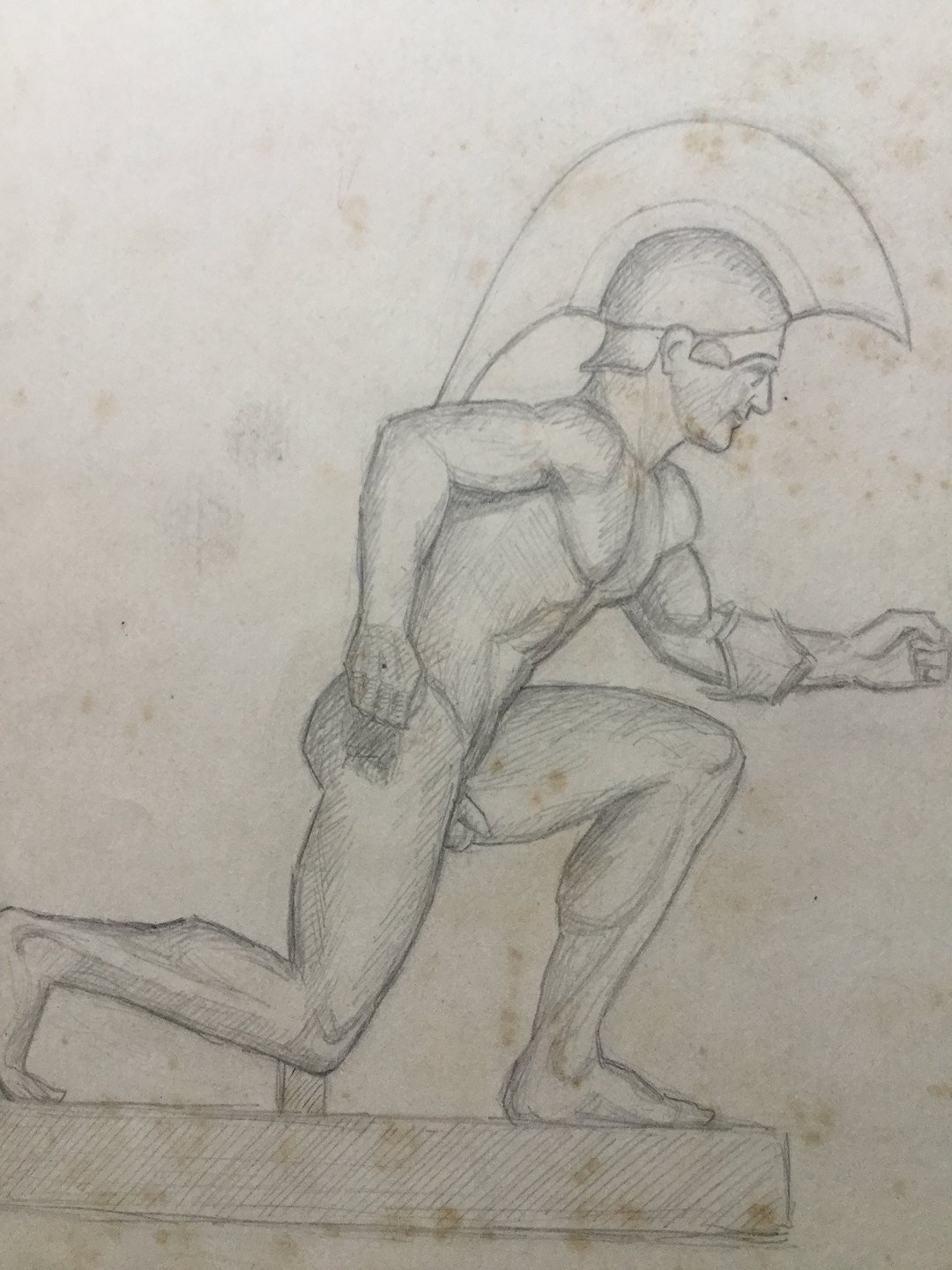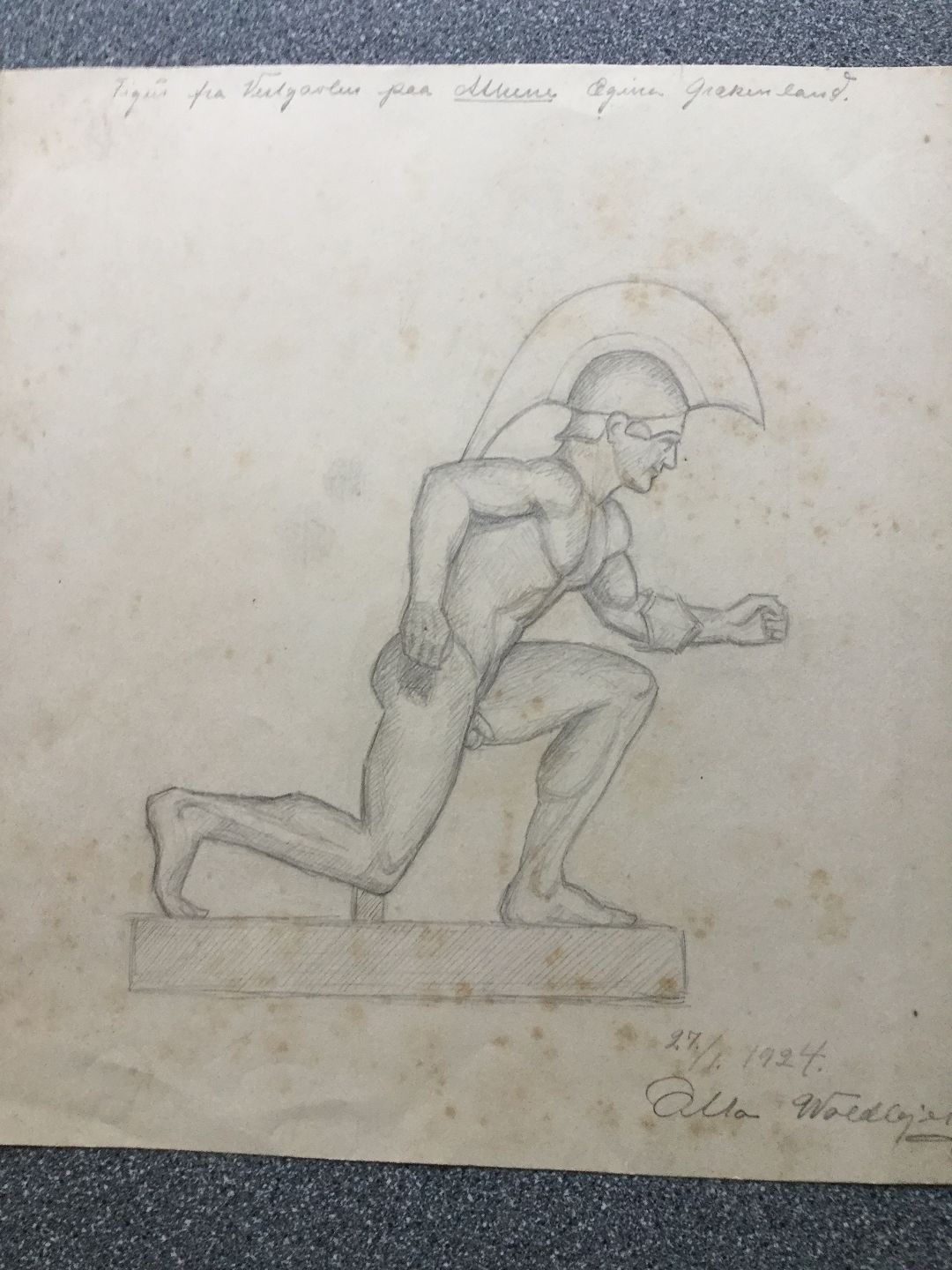 Figur fra vestgavlen på Athene Ægina, Grækenland 1924.