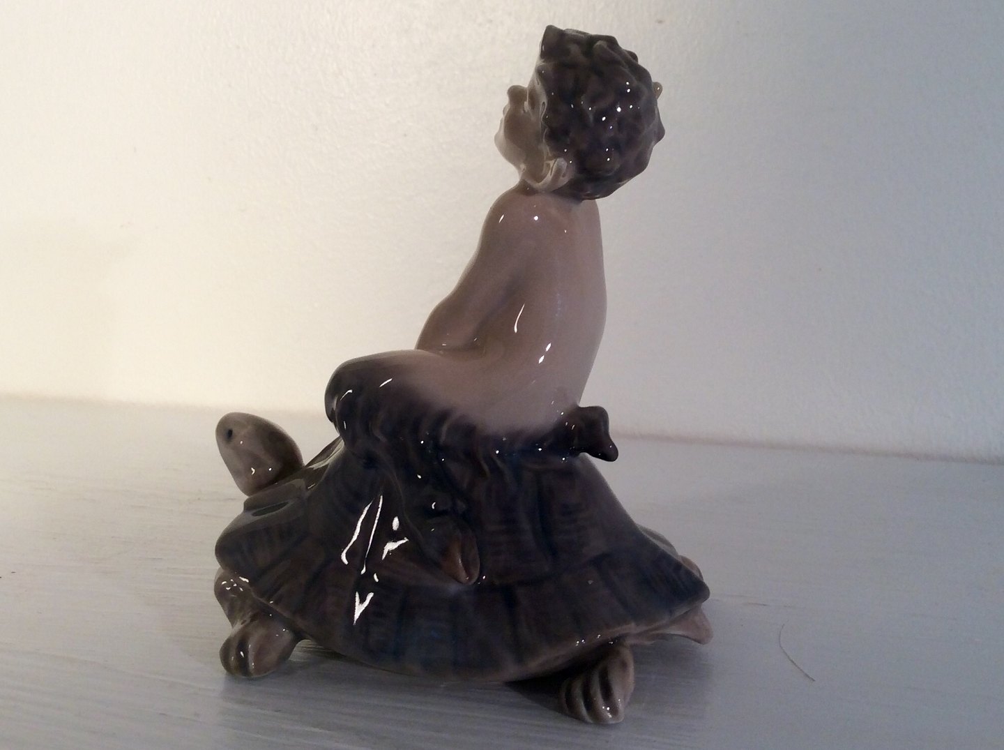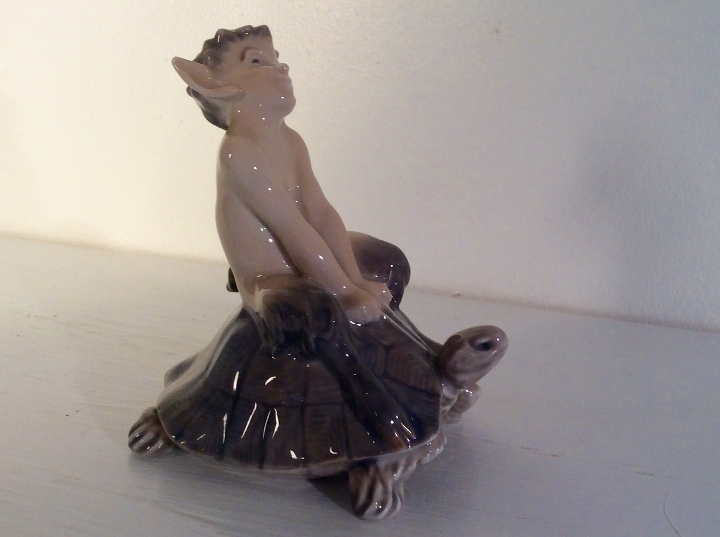 Royal Copenhagen, Faun på skildpadde #858, 10cm høj,9cm bred, 1.Sortering, Design Christian Thomsen *Lille nist på bunden*