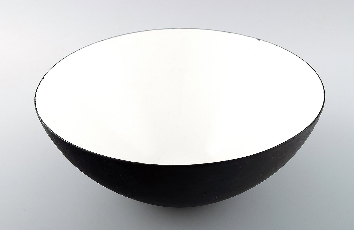 Krenitskål af Herbert Krenchel. Sort metal og hvid emalje.