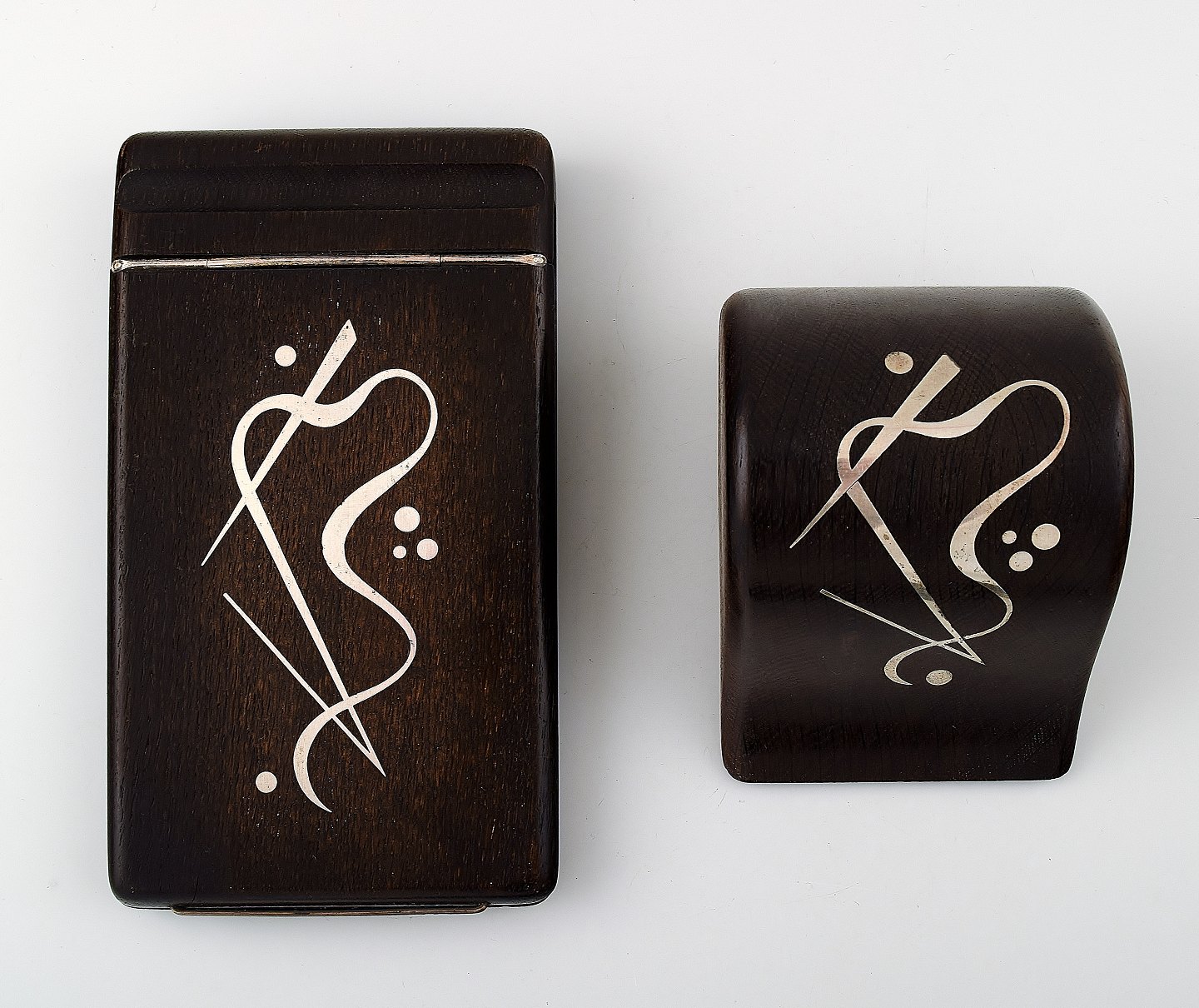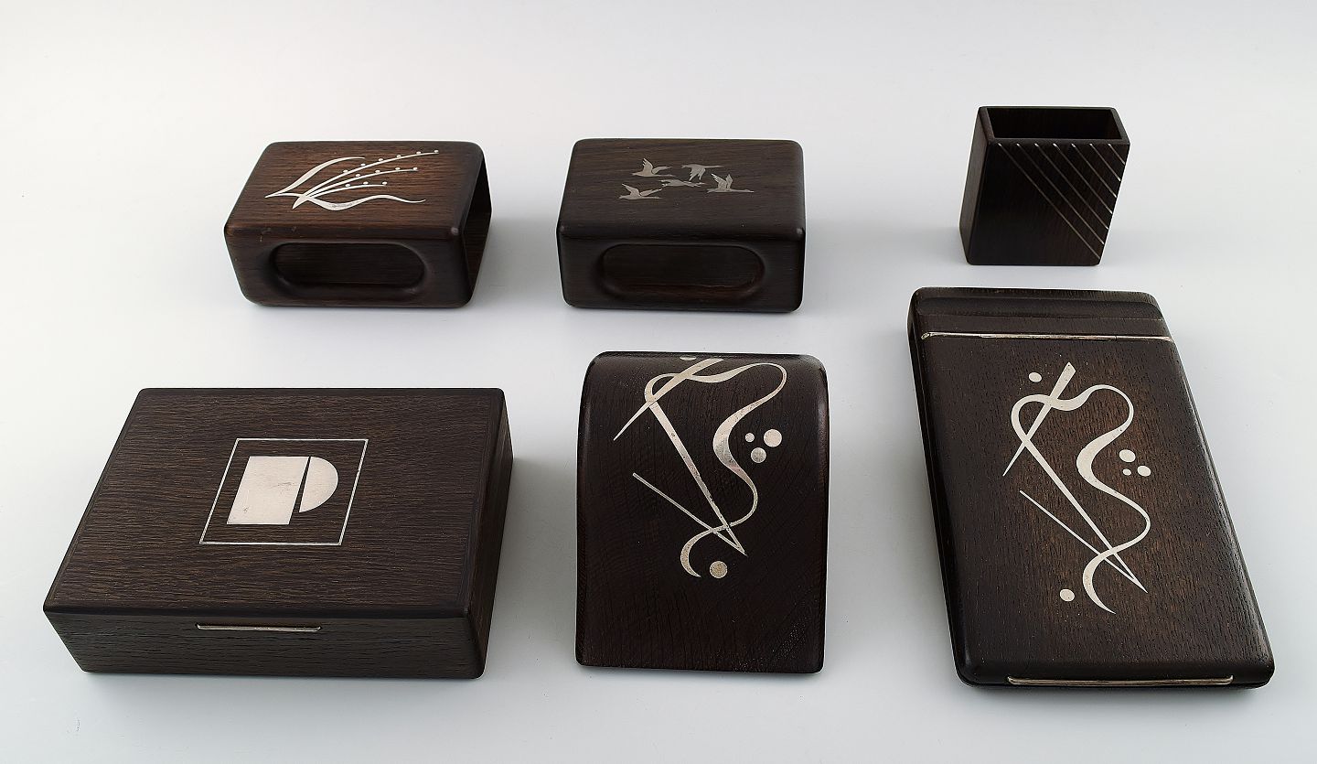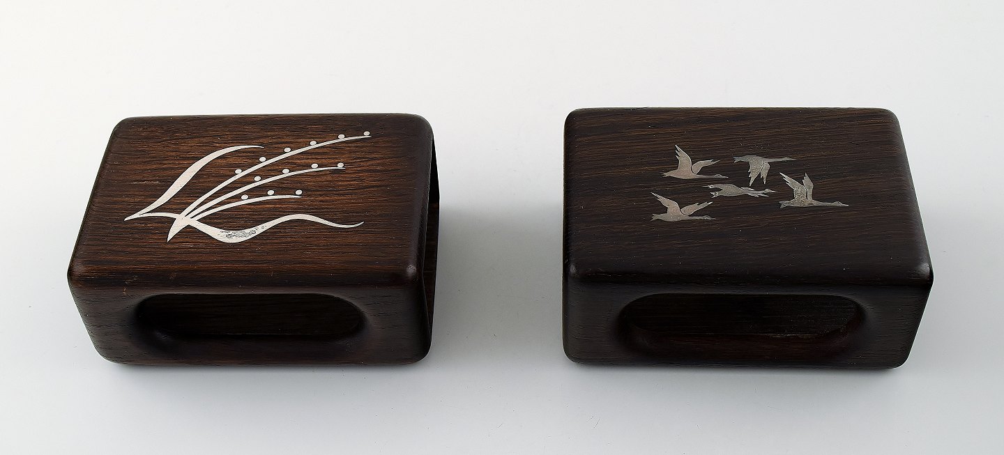 Dansk design, sæt på 6 dele palisander med sølvindlæg.