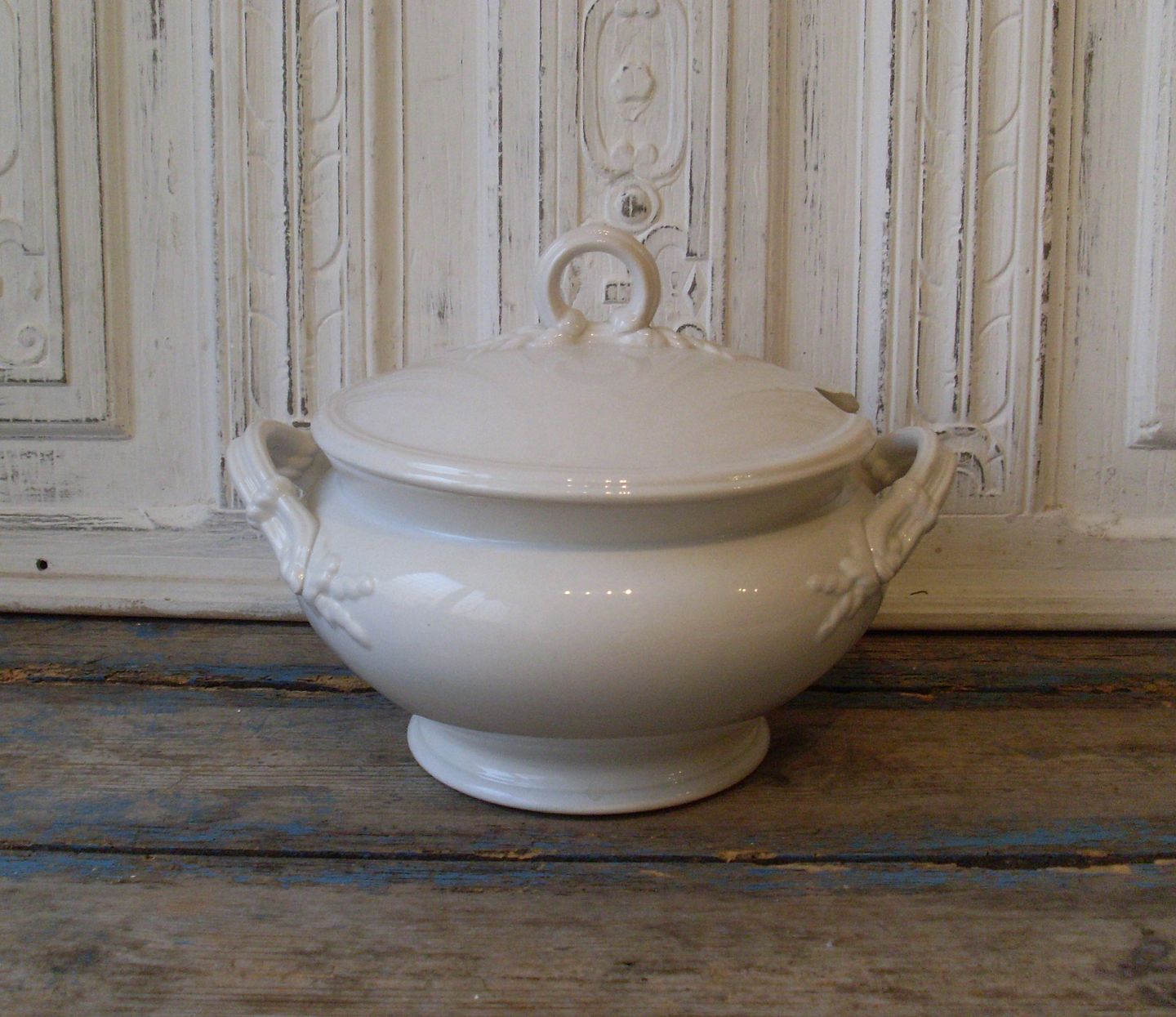 Stor Aluminia cremefarvet fajance terrin.
