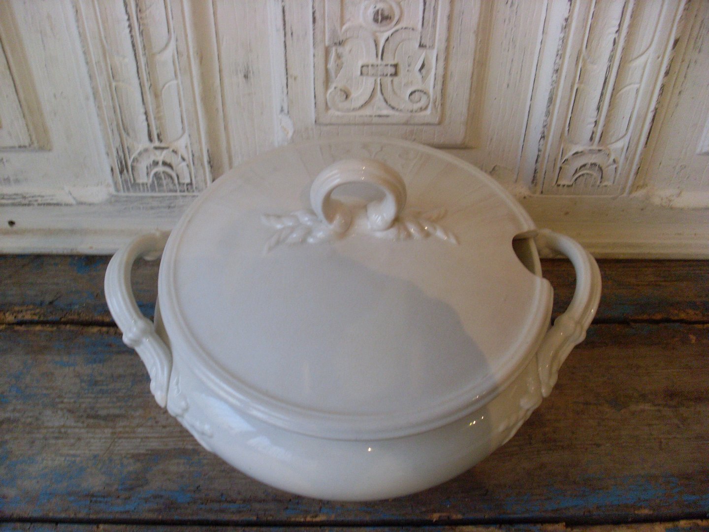 Stor Aluminia cremefarvet fajance terrin