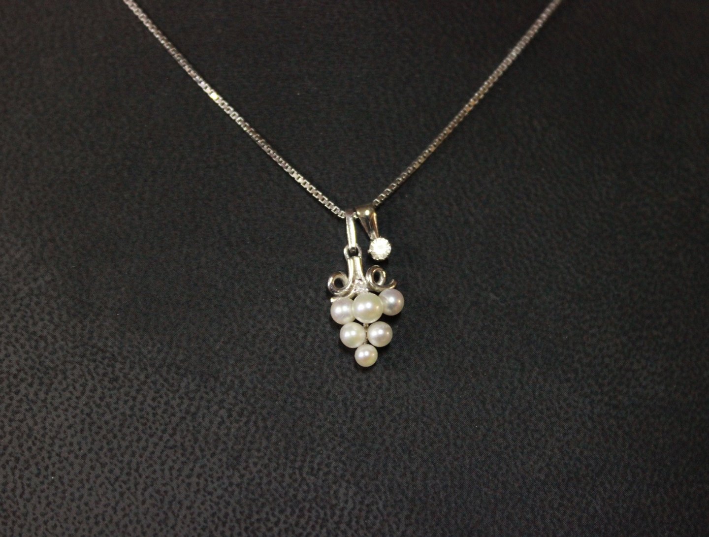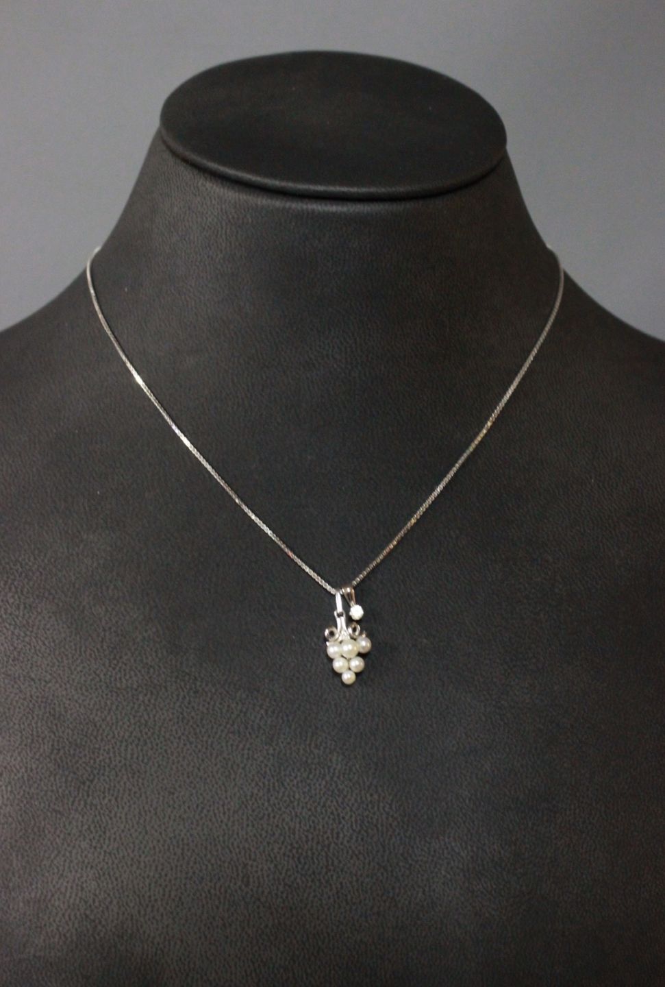 14 ct. with pendant with 6 small Pearls and small diamond, stamped KH.
