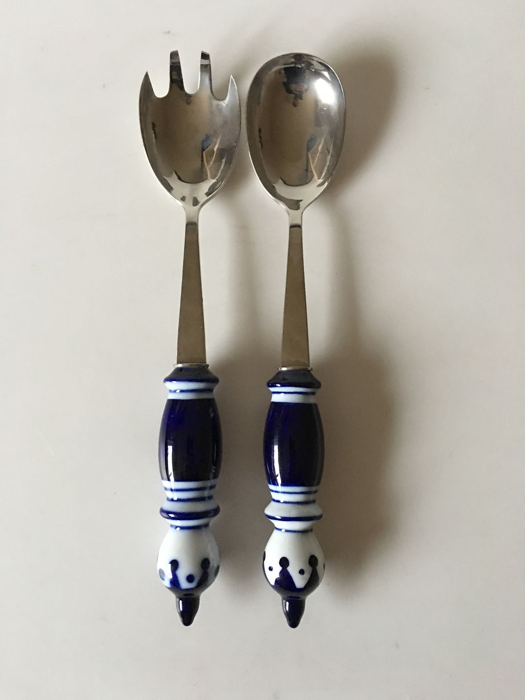 Rosenthal Blå Bjørn Wiinblad Siena Salat Serveringsæt i Keramik og Rustfrit Stål