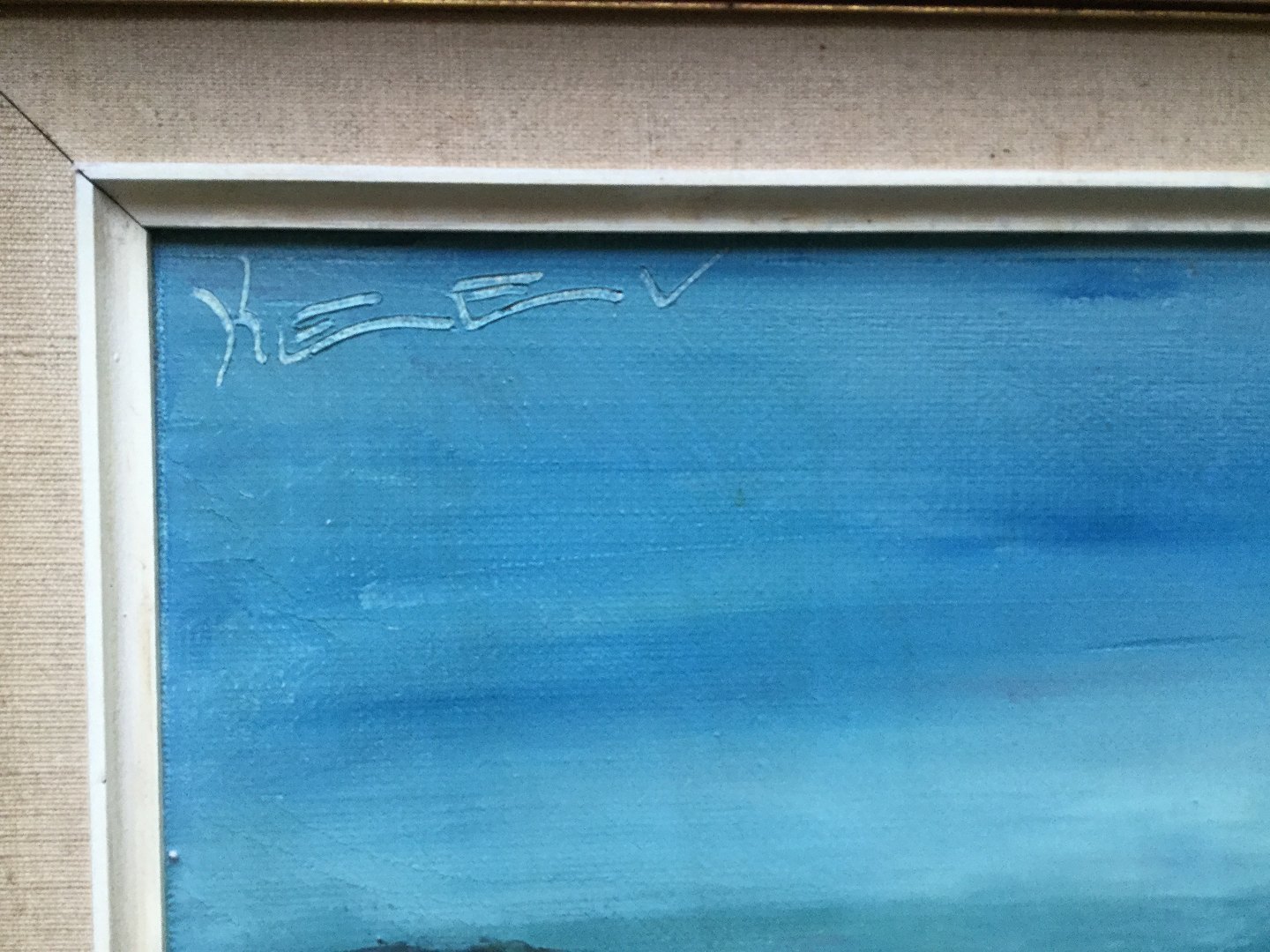 Smukt maleri - landskab ved havet signeret KEEV.