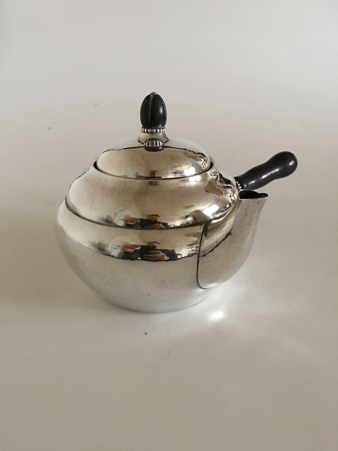 Georg Jensen Sterling Sølv Tekande No 1A med Ibenholdt. Fra 1915-1930. 10 x 13.5 cm. Vejer 342 gram.