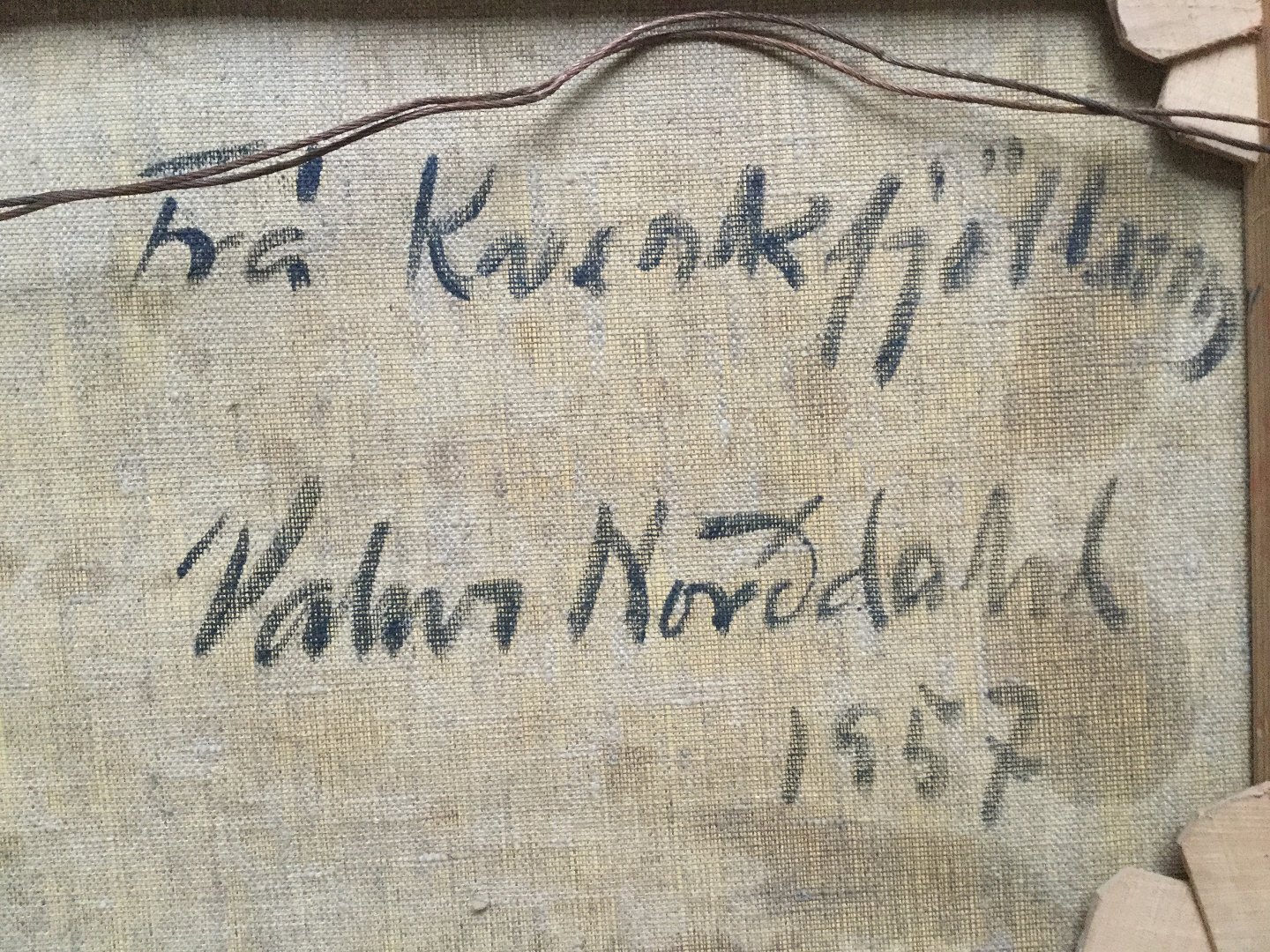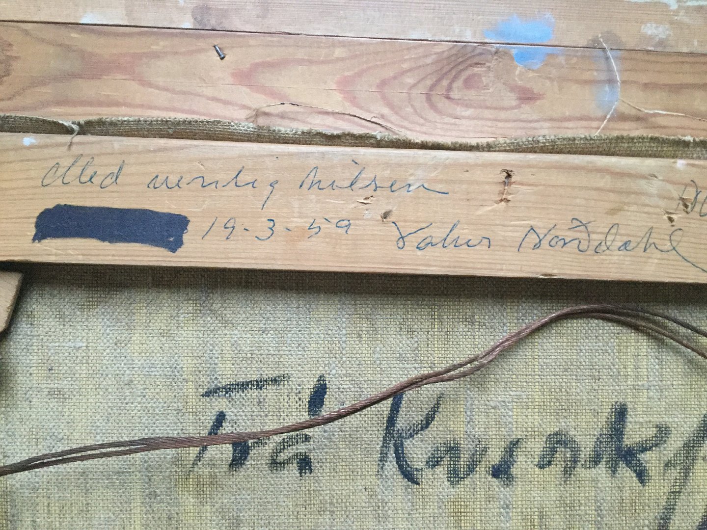 Bagpå blindramme - Med venlig hilsen 19-3-59 Valur Norddahl.