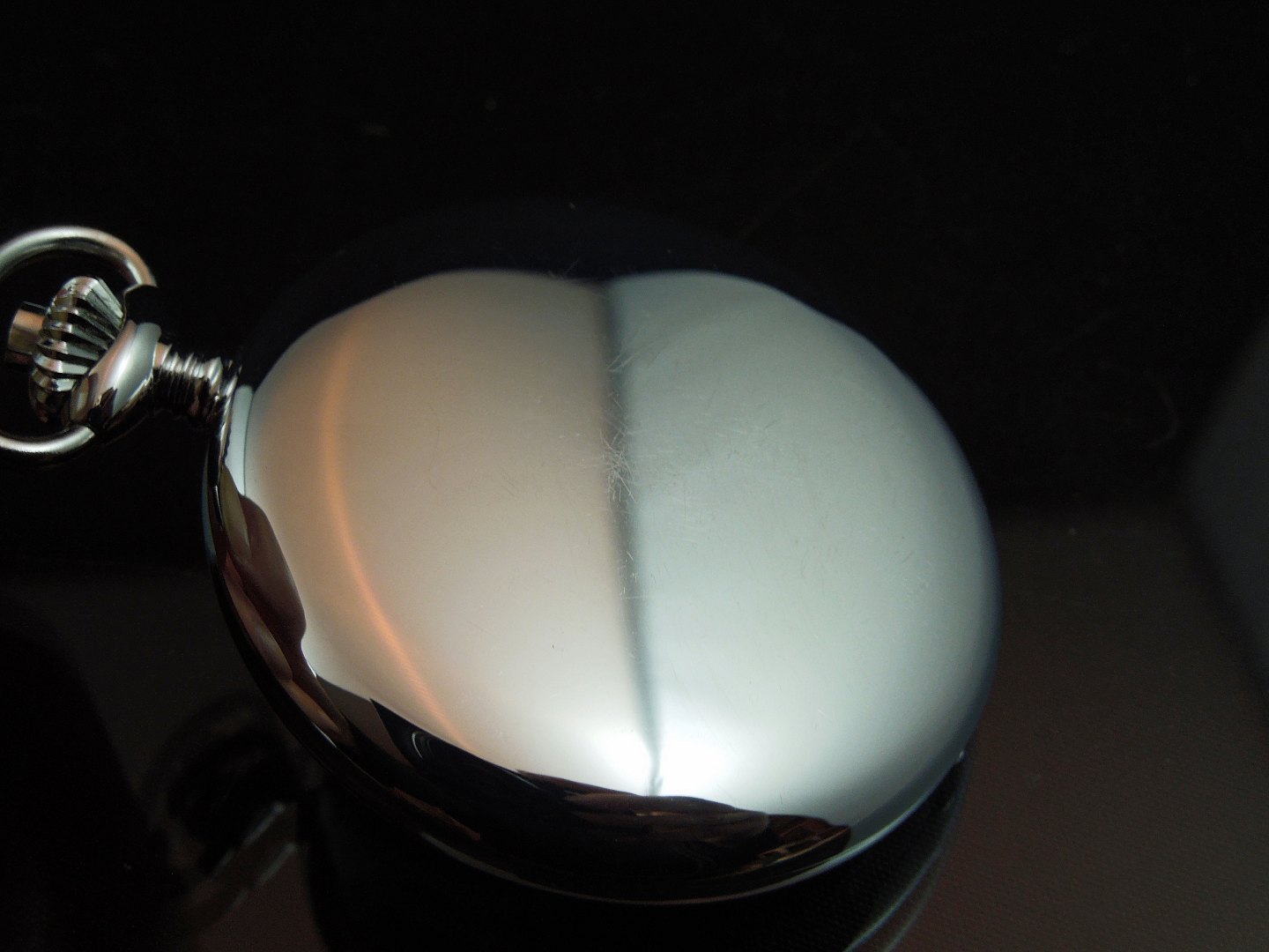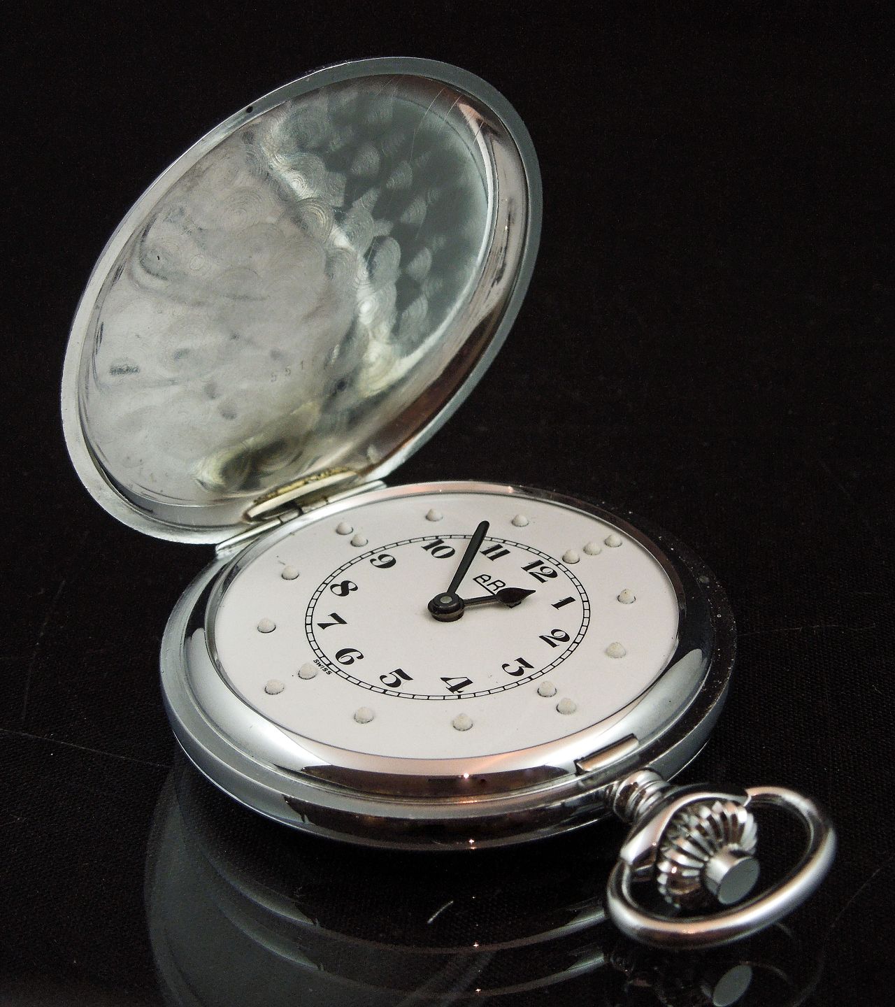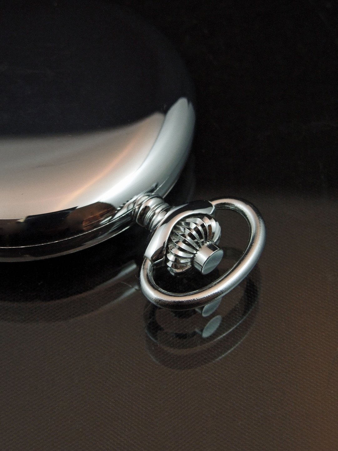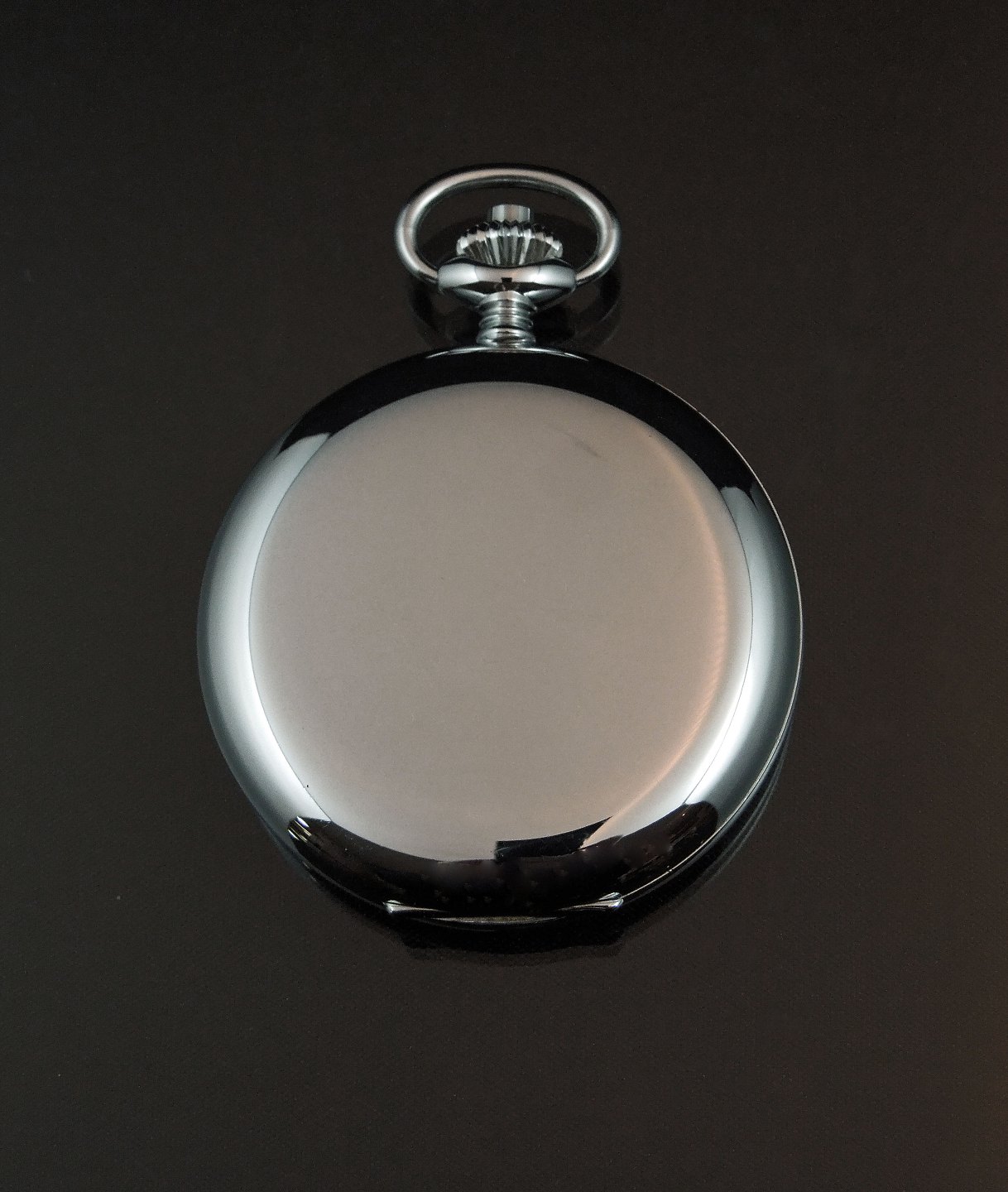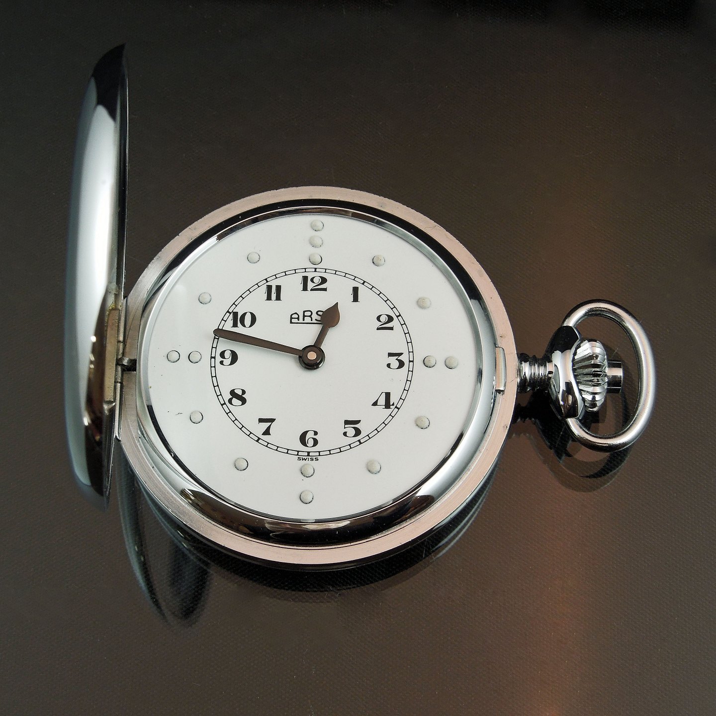 Optrækslommeur med punktskrift sat i blankpoleret urkasse af stål uden glasforsats. Uret er specielt velegnet til svagtseende og blinde.