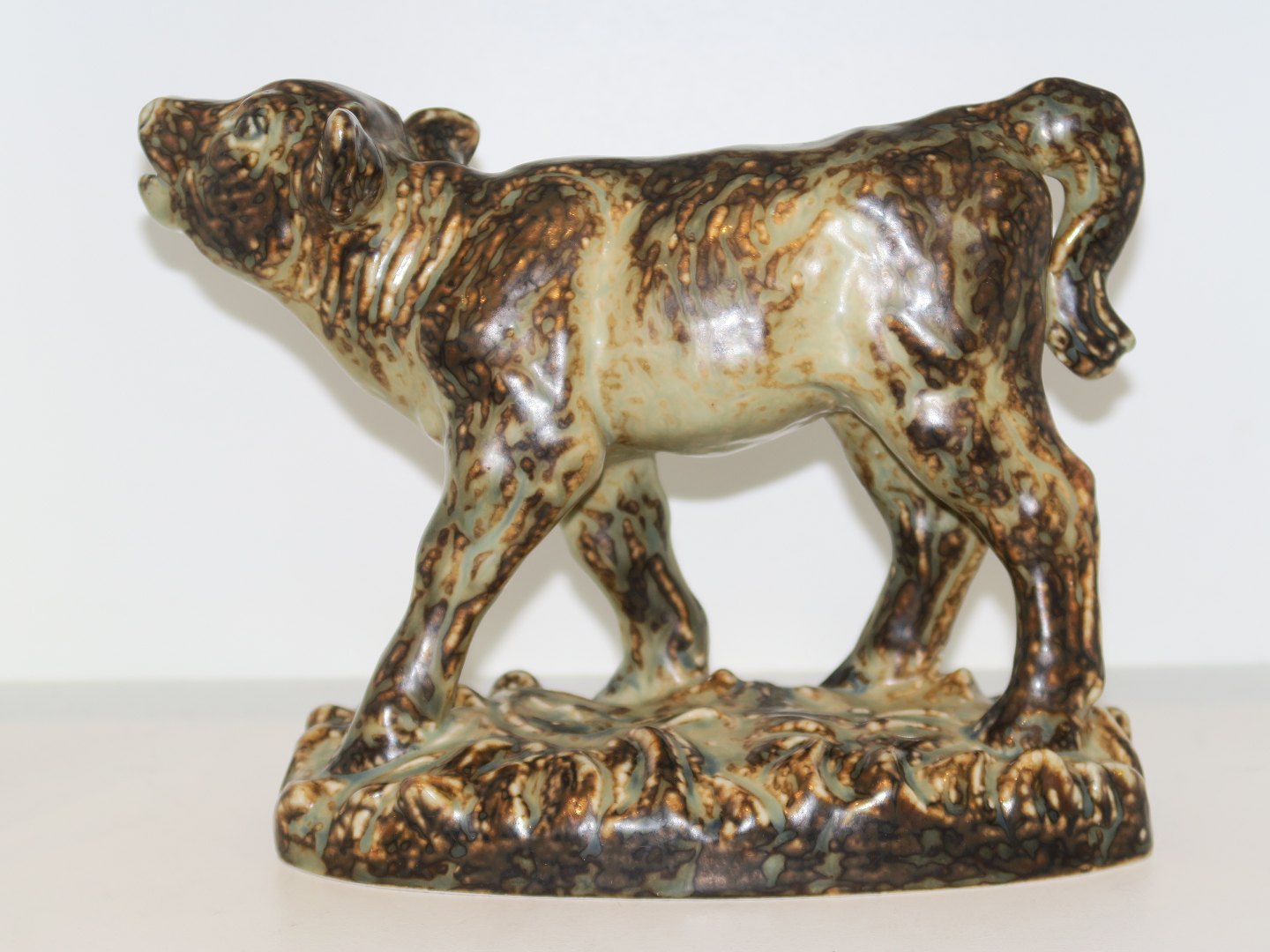 Stor Royal Copenhagen stentøjsfigur af kalv stående på base.