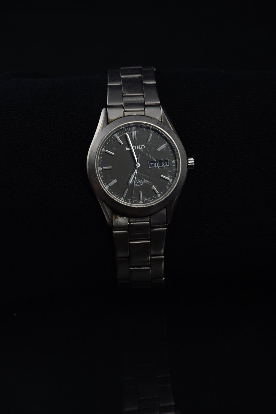 SEIKO titanium armbåndsur nr. 293744 med datoviser.
