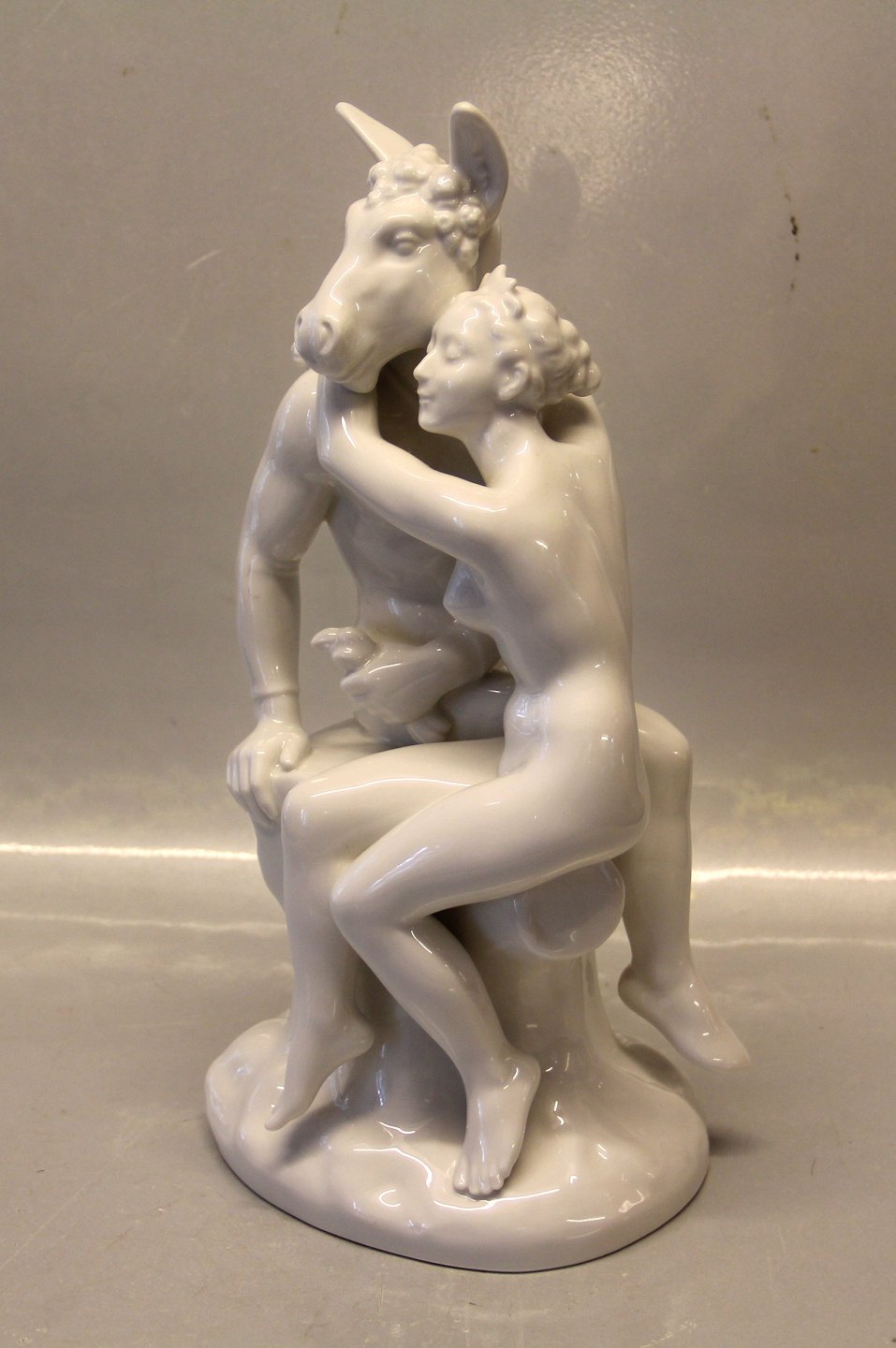 Kongelig Dansk 4404 Nøgen pige med æsel: Titania og Bottom fra En Skærsommernats Drøm Blanc de Chine 30 cm.