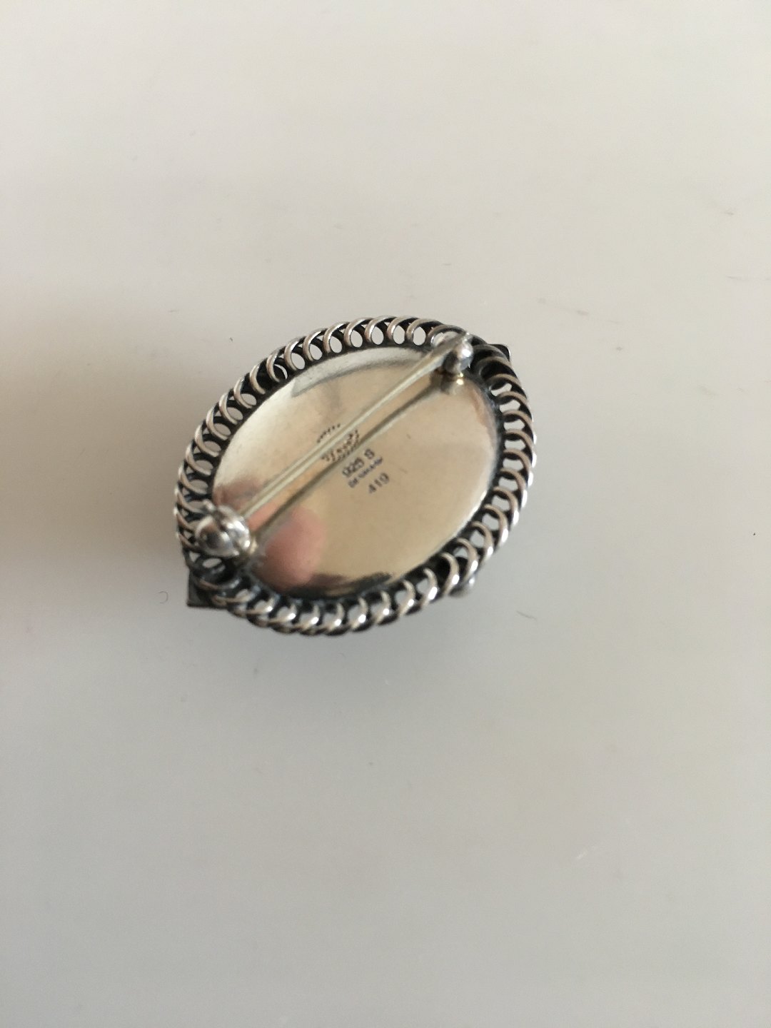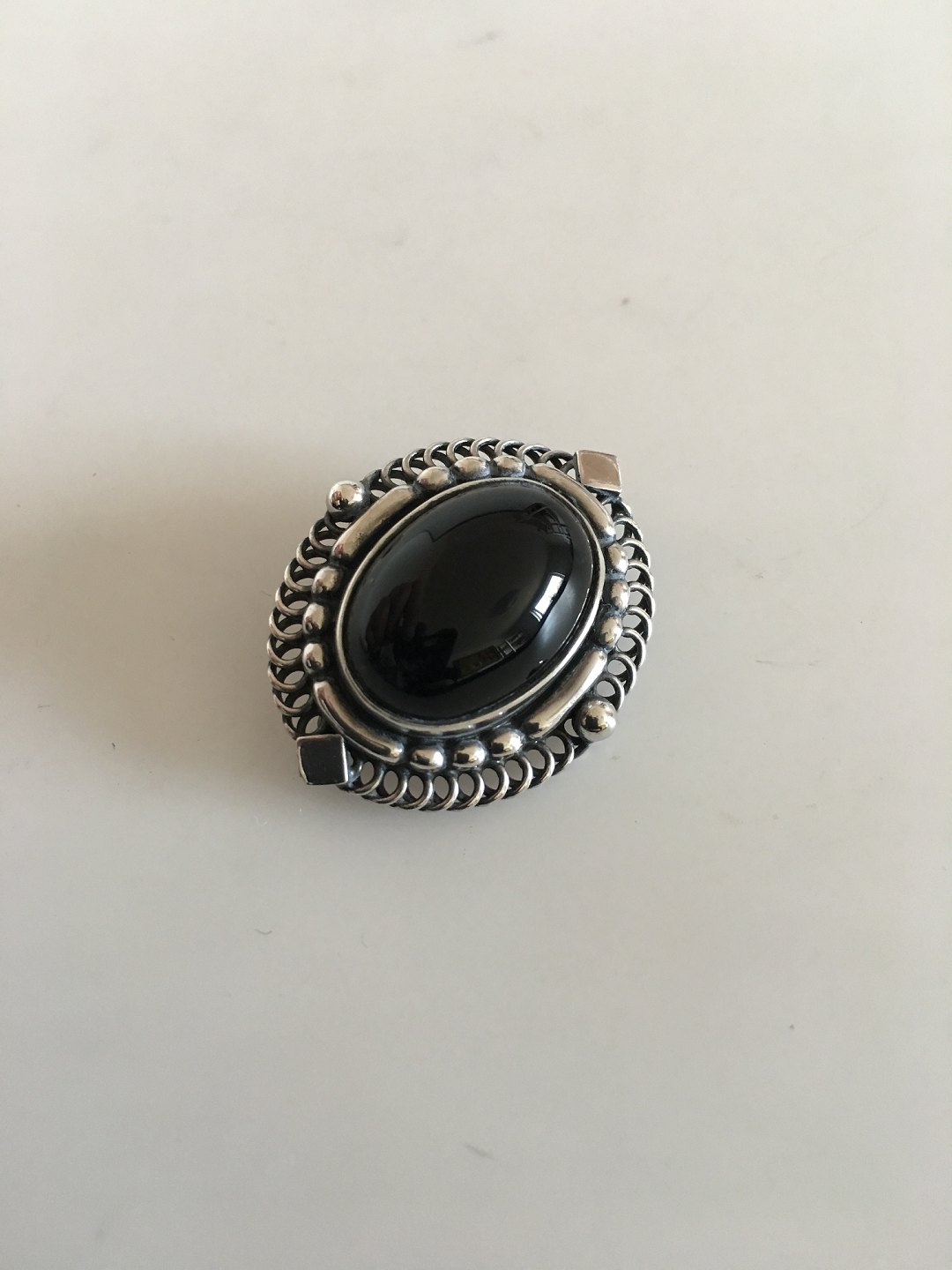 Georg Jensen Sterling Silver Brooch with Black Jewelry Stone No 419