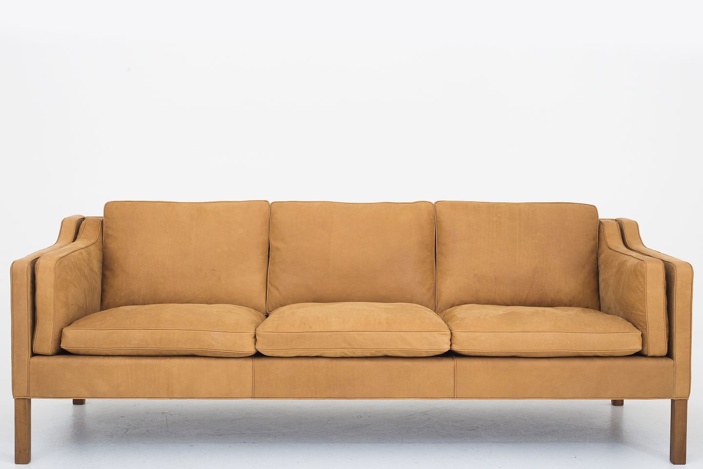 BM 2213 - Nybetrukket 3 pers. sofa i Dunes Camel-læder med ben i teak.